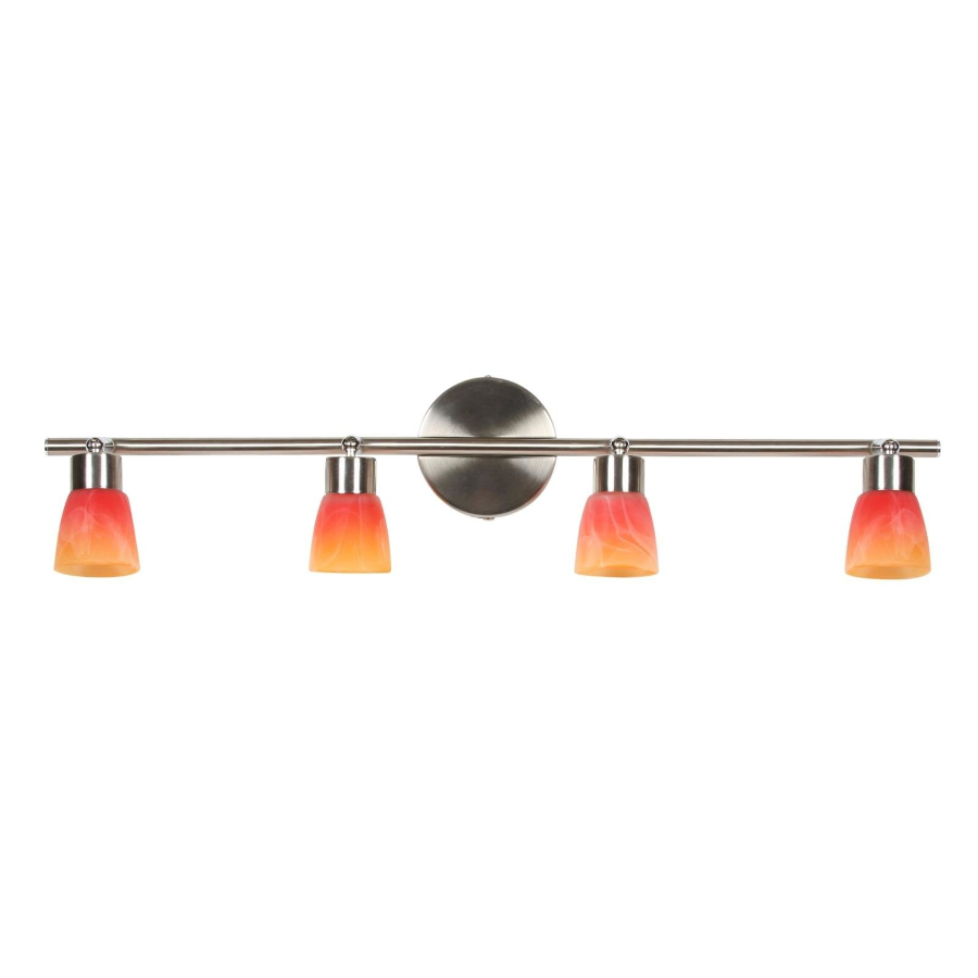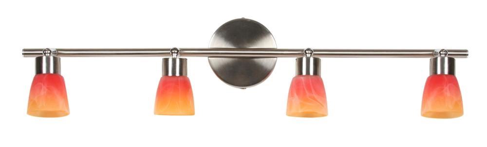 DROPS 94-07394 to nowoczesna lampa sufitowa z czterema źródłami światła. Wykonana została z wysokiej jakości metalu w kolorze satynowym. Lampa posiada cztery szklane czerwono-pomarańczowe klosze osadzone na ruchomych przegubach, które dają możliwość regulacji kąta padania światła. Oprawa będzie idealnym wyborem do klasycznych oraz nowoczesnych wnętrz. Doskonale będzie się prezentować w: salonie, jadalni, sypialni, pokoju młodzieżowym, gabinecie, biurze, lokalu, przedpokoju, korytarzu, kuchni. Wysokość lampy to: 17 cm, szerokość 63 cm. Źródłem światła jest żarówka typu G9 o mocy max 40W w ilości 4 szt.