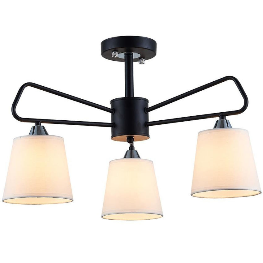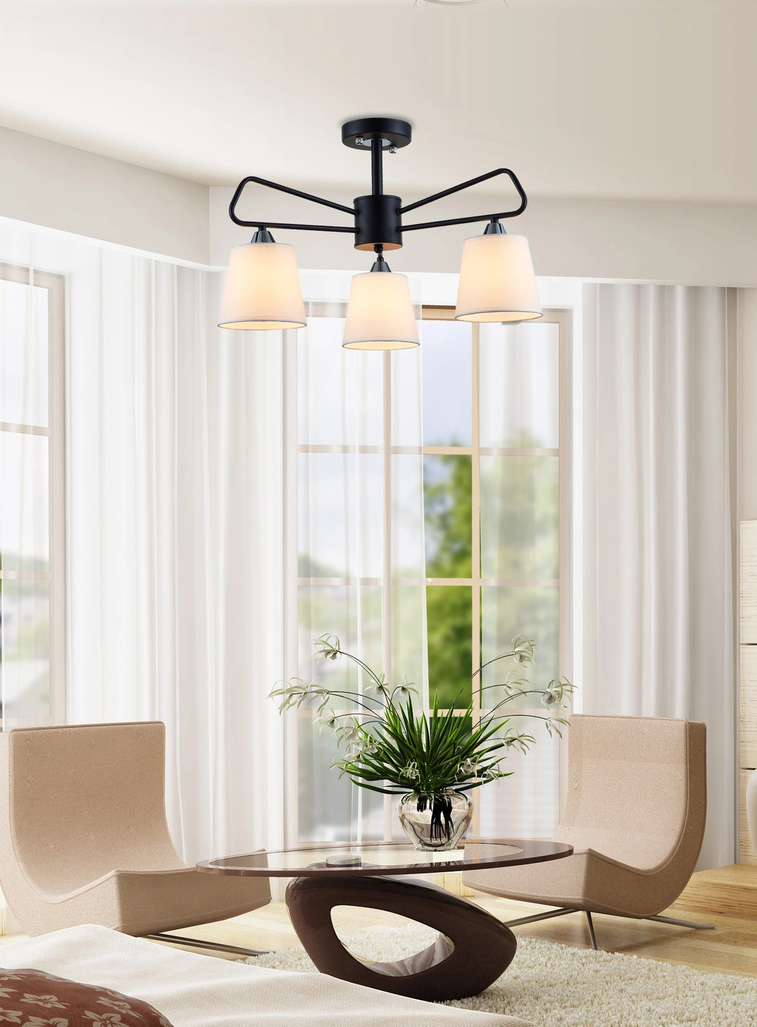 MORLEY LEDEA 50203091 to stylowa lampa sufitowa z trzema źródłami światła. Korpus lampy wykonano z wysokiej jakości metalu w kolorze czarnym, abażury są z białej tkaniny. Oprawa będzie idealnym wyborem do wnętrz urządzonych w stylu klasycznym oraz nowoczesnym. Doskonale będzie się prezentować w: salonie, jadalni, sypialni, pokoju młodzieżowym, gabinecie, lokalu, kuchni. Wysokość lampy to: 36,5 cm, średnica 58,5 cm. Źródłem światła jest żarówka typu E14 o mocy max 60W w ilości 3 szt.