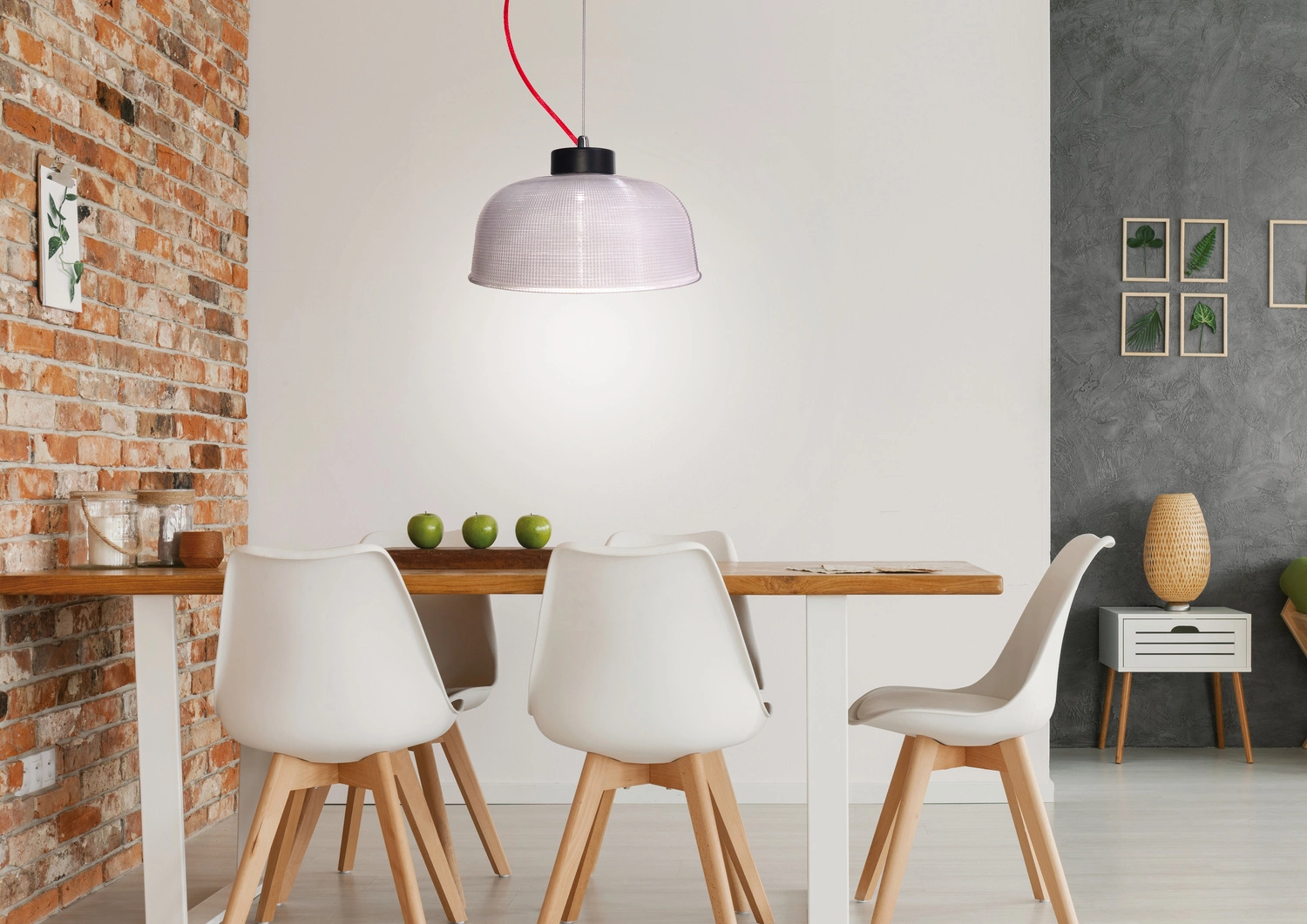 LIVERPOOL LEDEA 50101288 to stylowa lampa wisząca z jednym źródłem światła. Zawiesie lampy wykonano z wysokiej jakości stali w kolorze czarnym z czerwonym kablem, klosz jest z przezroczystego ryflowanego szkła inspirowany stylistyką lat 70. Oprawa będzie idealnym wyborem do wnętrz urządzonych w klasycznym stylu. Doskonale będzie się prezentować w salonie, jadalni, sypialni, pokoju, młodzieżowym, gabinecie, lokalu, kuchni. Dużą zaletą jest możliwość regulacji wysokości. Wysokość maksymalna lampy to: 90 cm, średnica 26 cm. Źródłem światła jest żarówka typu E27 o mocy max 40W w ilości 1 szt.