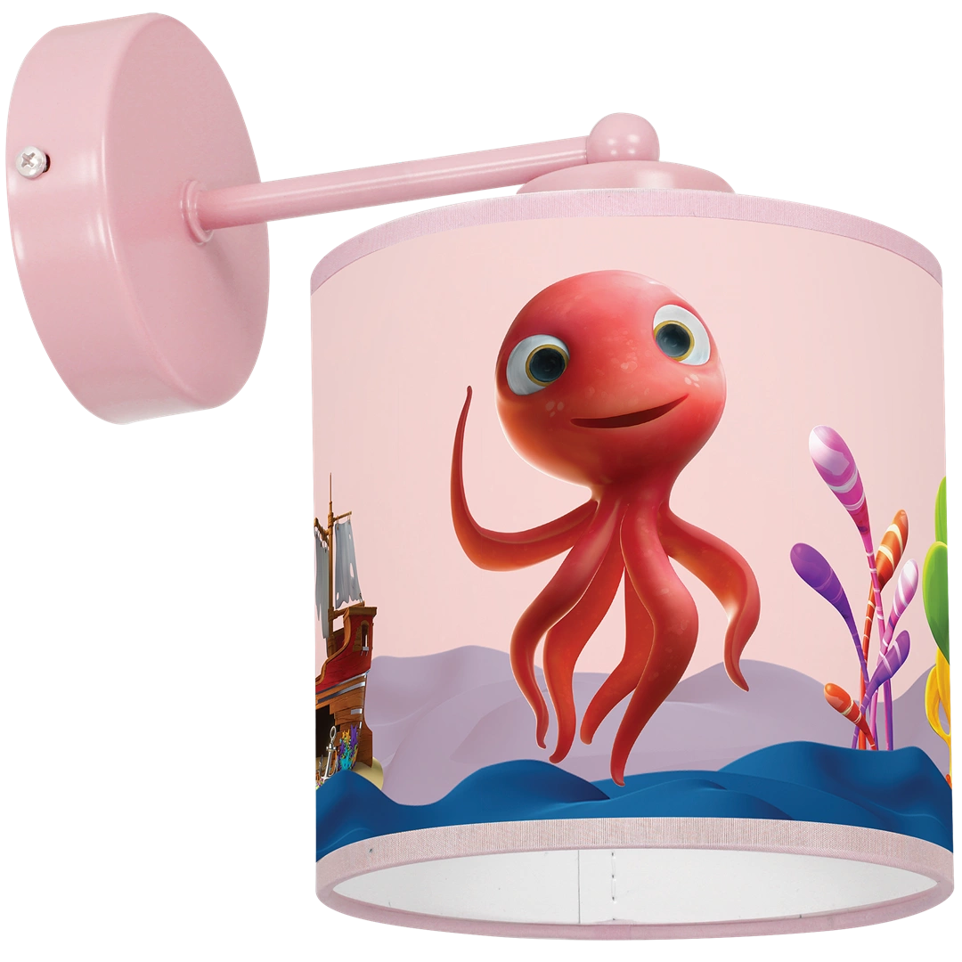 MINI MINI MLP6804 to nowoczesna lampa ścienna z jednym źródłem światła przeznaczona do dziecięcego pokoju. Korpus lampy wykonano z wysokiej jakości metalu w kolorze różowym. Klosz jest z tworzywa sztucznego z wielokolorowym motywem bajkowej postaci Ośmiorniczki Loli. Wysokość lampy to: 23 cm, szerokość 15 cm, głębokość 21 cm. Źródłem światła jest żarówka typu E27 o mocy max 60W w ilości 1 szt.