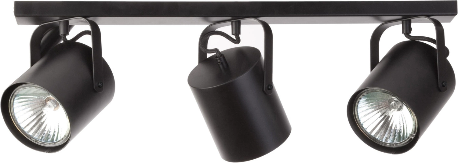 FLESZ E27 3 PLAFON to nowoczesna lampa sufitowa z trzema źródłami światła. Wykonana jest ze stali lakierowanej w kolorze czarnym. Lampa składa się z prostokątnej podsufitki i osadzonych na niej trzech kloszach w kształcie tuby. Klosze są ruchome, dzięki czemu możemy skierować punkt padania światła w dowolnym kierunku. Bardzo elegancki wygląd sprawia, że lampa będzie idealnym wyborem do wnętrz nowoczesnych. Doskonale wkomponuje się do: salonu, sypialni, biura, lokalu, pokoju młodzieżowego, kuchni, gabinetu. Wysokość lampy to: 20 cm, szerokość 60 cm, głębokość 12 cm. Klosz ma wysokość 18 cm i średnicę 10 cm. Źródłem światła jest żarówka typu E27 o mocy max 60W w ilości 3 szt.