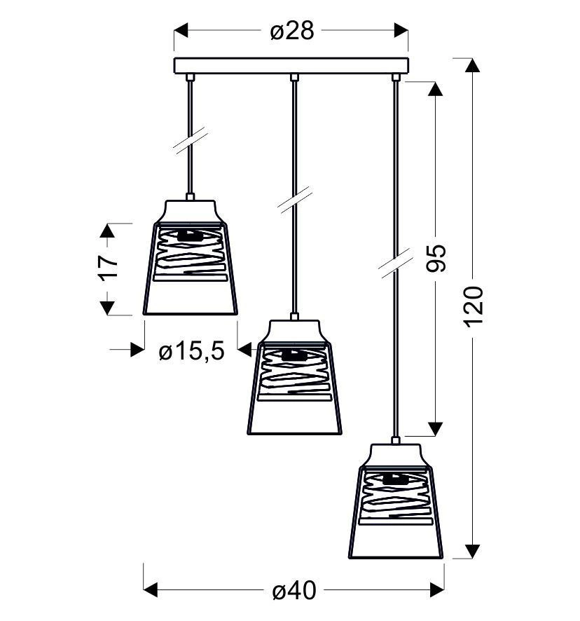 FRESNO 33-78988 to stylowa lampa wisząca z trzema źródłami światła. Zawiesie lampy wykonano z wysokiej jakości stali w kolorze czarnym, klosze są z transparentnego szkła z ozdobnymi złotymi spiralami z metalu wokół żarówek. Oprawa będzie idealnym wyborem do wnętrz urządzonych w stylu industrialnym oraz loftowym. Doskonale będzie się prezentować w salonie, jadalni, sypialni, pokoju, młodzieżowym, gabinecie, lokalu, kuchni. Dużą zaletą jest możliwość regulacji wysokości. Wysokość maksymalna lampy to: 120 cm, średnica 40 cm. Źródłem światła jest żarówka typu E27 o mocy max 60W w ilości 3 szt.