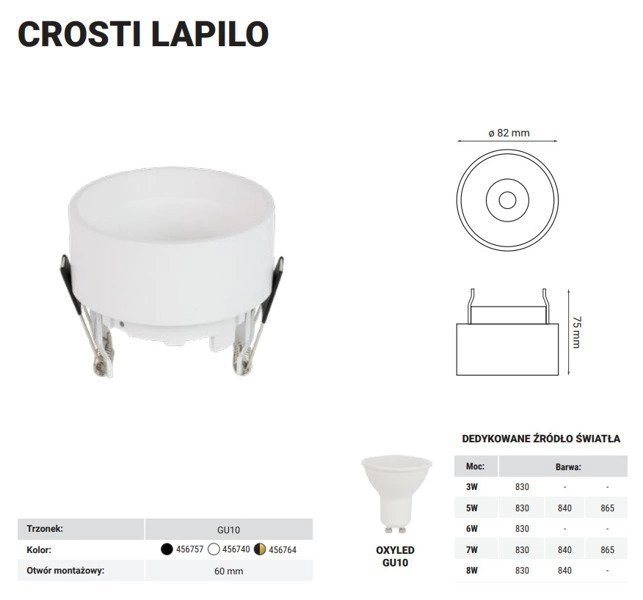 Oprawa wpuszczana oczko sufitowe CROSTI LAPILO śr. 8,2cm [różne wersje kolorystyczne]