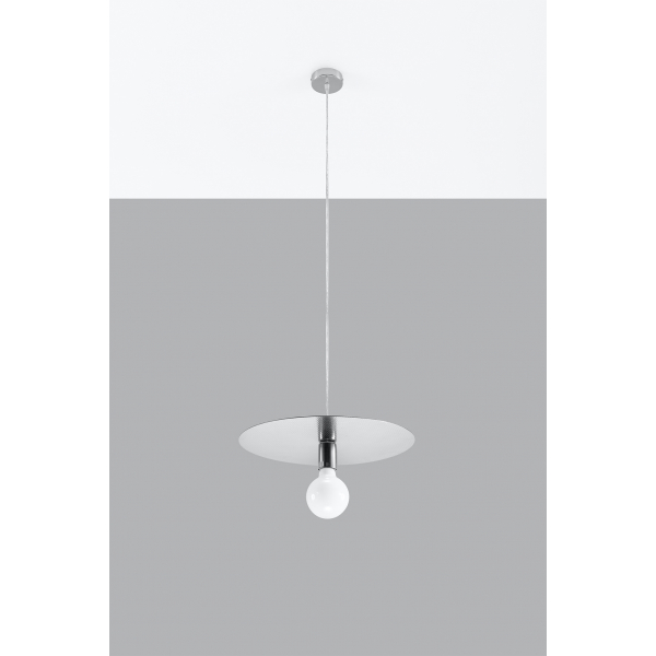 FLAVIO SL.0854 to nowoczesna lampa wisząca z jednym źródłem światła. Wykonana została z wysokiej jakości stali w kolorze inox. Klosz lampy stanowi prosty dysk pod którym umieszczono oprawkę żarówki. Oprawa będzie idealnym wyborem do wnętrz urządzonych w nowoczesnym stylu. Doskonale będzie się prezentować w: salonie, jadalni, sypialni, pokoju młodzieżowym, gabinecie, biurze, lokalu, kuchni. Dużą zaletą jest możliwość regulacji wysokości. Wysokość maksymalna lampy to: 120 cm, szerokość 40 cm, głębokość 40 cm. Źródłem światła jest żarówka typu E27 o mocy max 60W w ilości 1 szt.