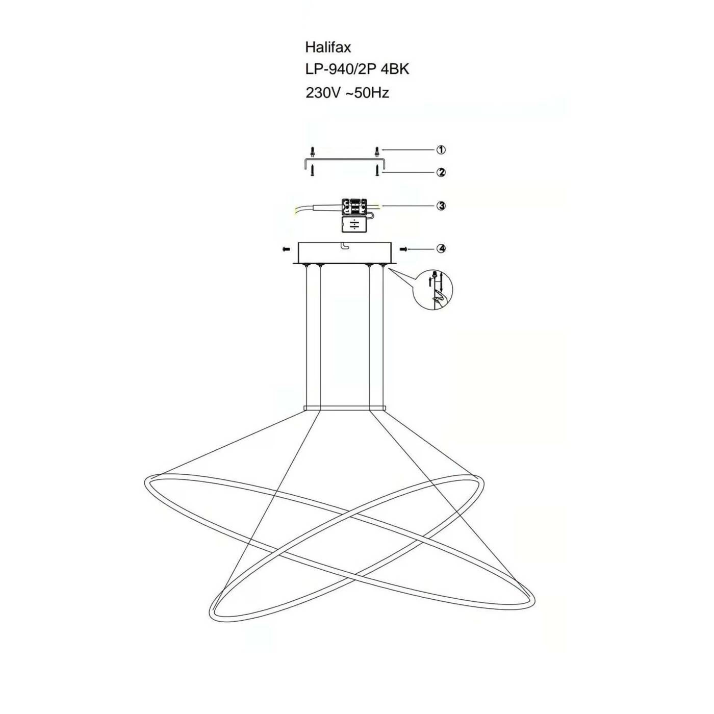 HALIFAX LP-940/2P 4BK to stylowa lampa wisząca z dwoma źródłami światła. Wykonana została z wysokiej jakości metalu w kolorze czarnym. Źródła światła ukryto pod mlecznymi osłonami z akrylu. Oprawa będzie idealnym wyborem do wnętrz urządzonych w nowoczesnym stylu. Doskonale będzie się prezentować w: salonie, jadalni, sypialni, pokoju młodzieżowym, gabinecie, lokalu, kuchni. Dużym atutem jest możliwość regulacji wysokości. Wysokość maksymalna lampy to: 120 cm, średnica 80 cm. Lampa posiada dwa zintegrowane źródła światła LED o mocy 45W, neutralnej barwie 4000K i jasności 2700lm