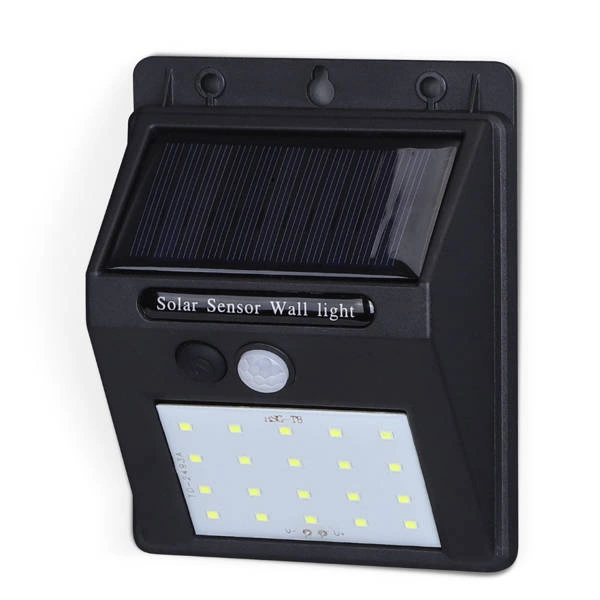 Zewnętrzna lampa solarna nad drzwi z wbudowanym źródłem światła LED i solarnym zasilaniem.