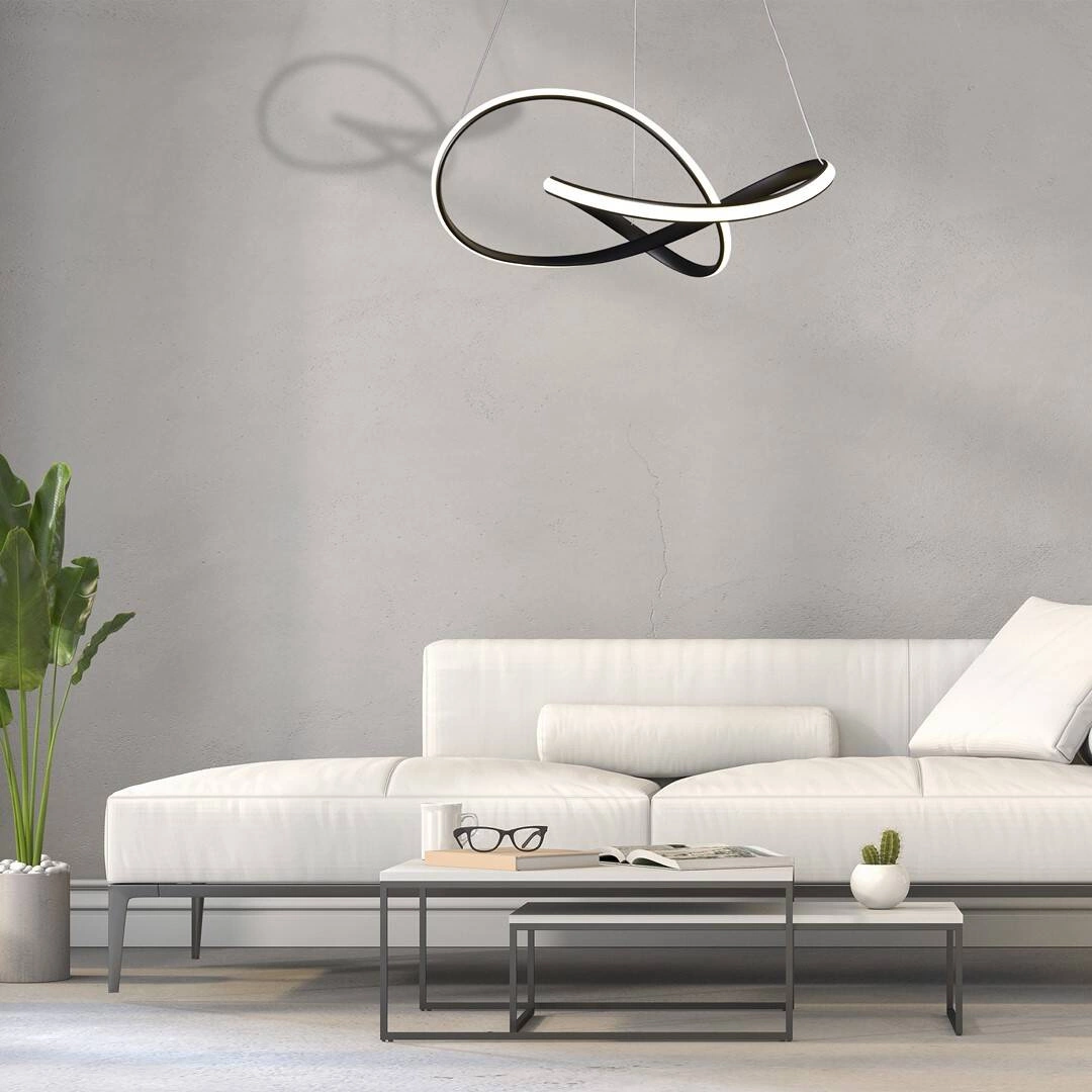 CAPPIO ML6771 to stylowa lampa wisząca z jednym źródłem światła. Wykonana została z wysokiej jakości metalu w kolorze czarnym, źródło światła ukryto pod mleczną osłoną z tworzywa. Elementem wyróżniającym lampy jest fantazyjnie powyginany klosz przypominający przeplatające się ze sobą ogniwa damskiej bransoletki. Oprawa będzie idealnym wyborem do wnętrz urządzonych w nowoczesnym stylu. Doskonale będzie się prezentować w: salonie, jadalni, sypialni, pokoju młodzieżowym, gabinecie, biurze, lokalu, kuchni. Dużym atutem jest możliwość regulacji wysokości. Wysokość maksymalna lampy to: 100 cm, szerokość 60 cm, głębokość 60 cm. Lampa posiada zintegrowane źródło światła LED o mocy 36W, neutralnej barwie 4000K i jasności 2160lm (źródło światła jest wymienne)