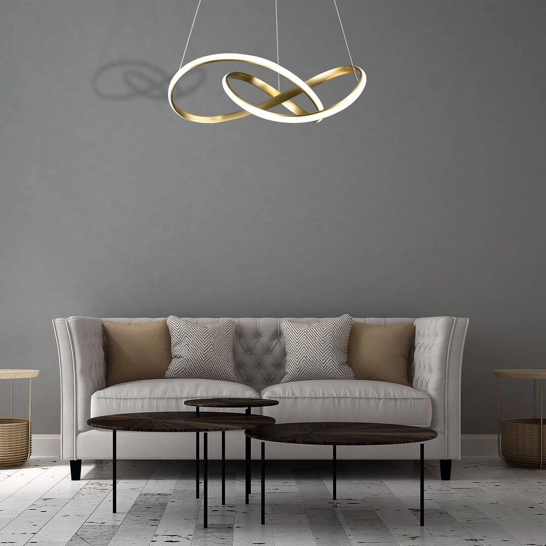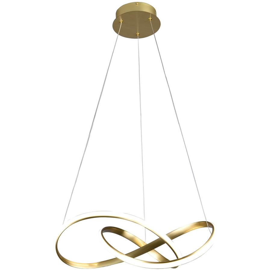 CAPPIO ML6772 to stylowa lampa wisząca z jednym źródłem światła. Wykonana została z wysokiej jakości metalu w kolorze złotym, źródło światła ukryto pod mleczną osłoną z tworzywa. Elementem wyróżniającym lampy jest fantazyjnie powyginany klosz przypominający przeplatające się ze sobą ogniwa damskiej bransoletki. Oprawa będzie idealnym wyborem do wnętrz urządzonych w nowoczesnym stylu. Doskonale będzie się prezentować w: salonie, jadalni, sypialni, pokoju młodzieżowym, gabinecie, biurze, lokalu, kuchni. Dużym atutem jest możliwość regulacji wysokości. Wysokość maksymalna lampy to: 100 cm, szerokość 60 cm, głębokość 60 cm. Lampa posiada zintegrowane źródło światła LED o mocy 36W, neutralnej barwie 4000K i jasności 2160lm (źródło światła jest wymienne)