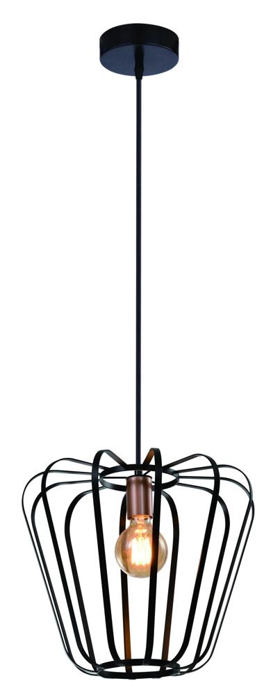 JONAS 31-78483 to stylowa lampa wisząca z jednym źródłem światła. Wykonana została z wysokiej jakości stali. Elementem zwracającym uwagę jest czarny druciany klosz z miedzianą wstawką. Oprawa będzie idealnym wyborem do wnętrz urządzonych w stylu nowoczesnym, industrialnym oraz loftowym. Doskonale będzie się prezentować w salonie, jadalni, sypialni, pokoju, młodzieżowym, gabinecie, lokalu, kuchni. Dużym atutem jest możliwość regulacji wysokości. Wysokość maksymalna lampy to: 118 cm, szerokość 35 cm, głębokość 35 cm. Źródłem światła jest żarówka typu E27 o mocy max 40W w ilości 1 szt.