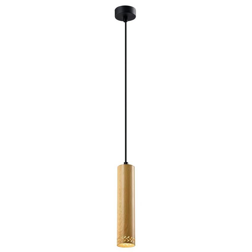 TUBO 31-78582 to stylowa lampa wisząca z jednym źródłem światła. Zawiesie lampy wykonano z wysokiej jakości stali w kolorze czarnym, klosz jest w kolorze naturalnego drewna. Oprawa będzie idealnym wyborem do wnętrz urządzonych w stylu nowoczesnym oraz skandynawskim. Doskonale będzie się prezentować w: salonie, jadalni, sypialni, pokoju młodzieżowym, gabinecie, lokalu, kuchni. Dużym atutem jest możliwość regulacji wysokości. Wysokość maksymalna lampy to: 90 cm, szerokość 7 cm, głębokość 7 cm. Klosz ma wysokość 25 cm. Źródłem światła jest żarówka typu GU10 o mocy max 25W w ilości 1 szt.