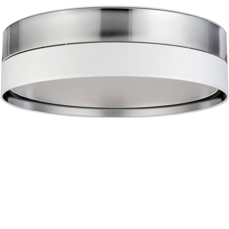 Lampa sufitowa z serii HILTON SILVER wykonana jest z metalu. Posiada bardzo ciekawy, charakterystyczny abażur w dwóch kolorach białym oraz srebrnym. Wyposażony jest w cztery źródła światła E27 o max. mocy 15W typu LED.