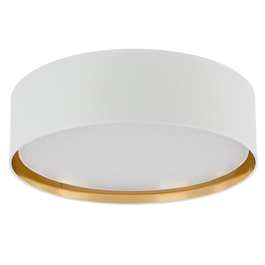 BILBAO 3433 to nowoczesna lampa sufitowa z czterema źródłami światła. Lampa posiada cylindryczny abażur w kolorze białym na zewnątrz, złotym od środka. Źródła światła osłonięte są białym dyfuzorem, który równomiernie rozprasza światło. Oprawa będzie idealnym wyborem do nowoczesnych wnętrz. Doskonale będzie się prezentować w każdym pomieszczeniu. Lampa ma wysokość 17 cm i średnicę 60 cm. Źródłem światła jest żarówka E27 typu LED o mocy max 15W w ilości 4 szt.