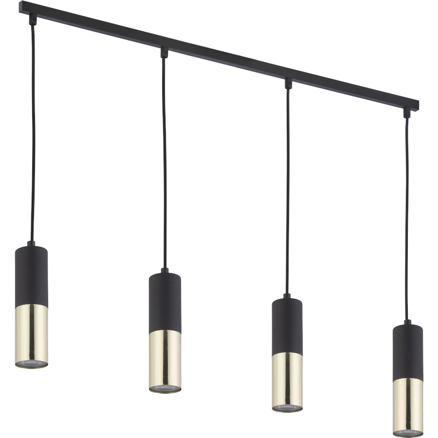 ELIT BLACK 4367 to nowoczesna lampa wisząca z czterema źródłami światła. Wykonana została z wysokiej jakości metalu w kolorze czarno-złotym. Lampa posiada cztery klosze w kształcie tub, zwisające z podłużnej podsufitki. Będzie idealnym wyborem do wnętrz urządzonych w nowoczesnym stylu. Doskonale będzie się prezentować w każdym pomieszczeniu. Dużą zaletą jest możliwość regulacji wysokości.