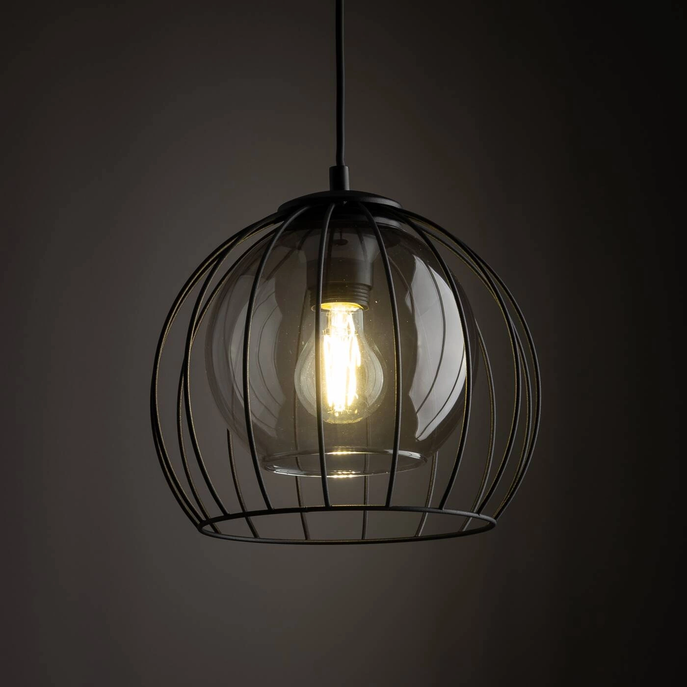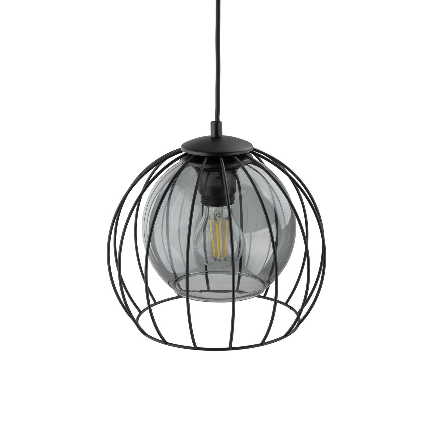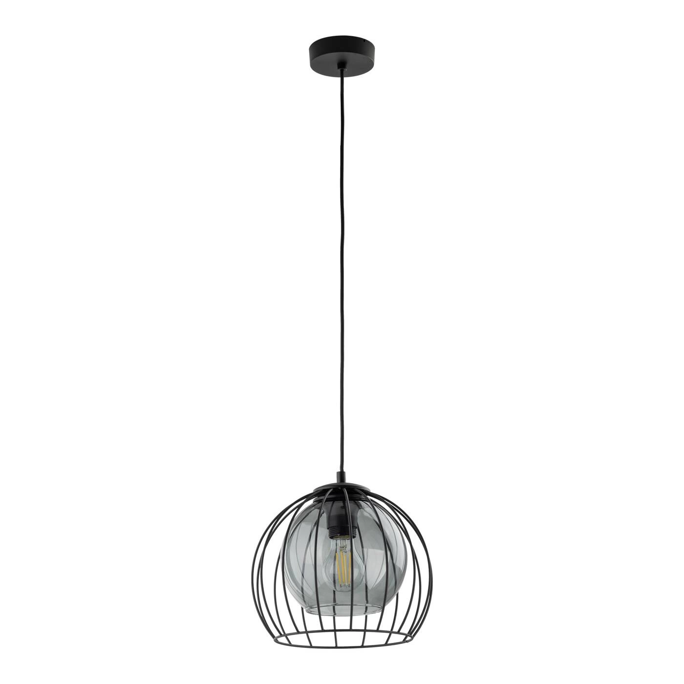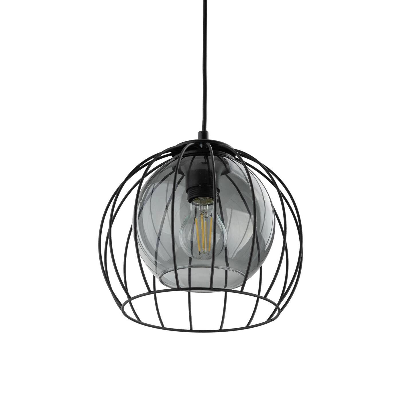 UNIVERSO 3154 to nowoczesna lampa wisząca z jednym źródłem światła. Stelaż lampy wykonano z metalu w kolorze czarnym. Oprawa posiada szklany transparentny klosz o grafitowym odcieniu dodatkowo osłonięty drucianą czaszą. Lampa będzie idealnym wyborem do wnętrz urządzonych w stylu nowoczesnym oraz loftowym. Doskonale będzie się prezentować w każdym pomieszczeniu. Dużą zaletą lampy jest możliwość regulacji wysokości. Wysokość maksymalna lampy to: 105 cm, szerokość 26 cm, głębokość 26 cm. Źródłem światła jest żarówka typu E27 o mocy max 60W w ilości 1 szt.