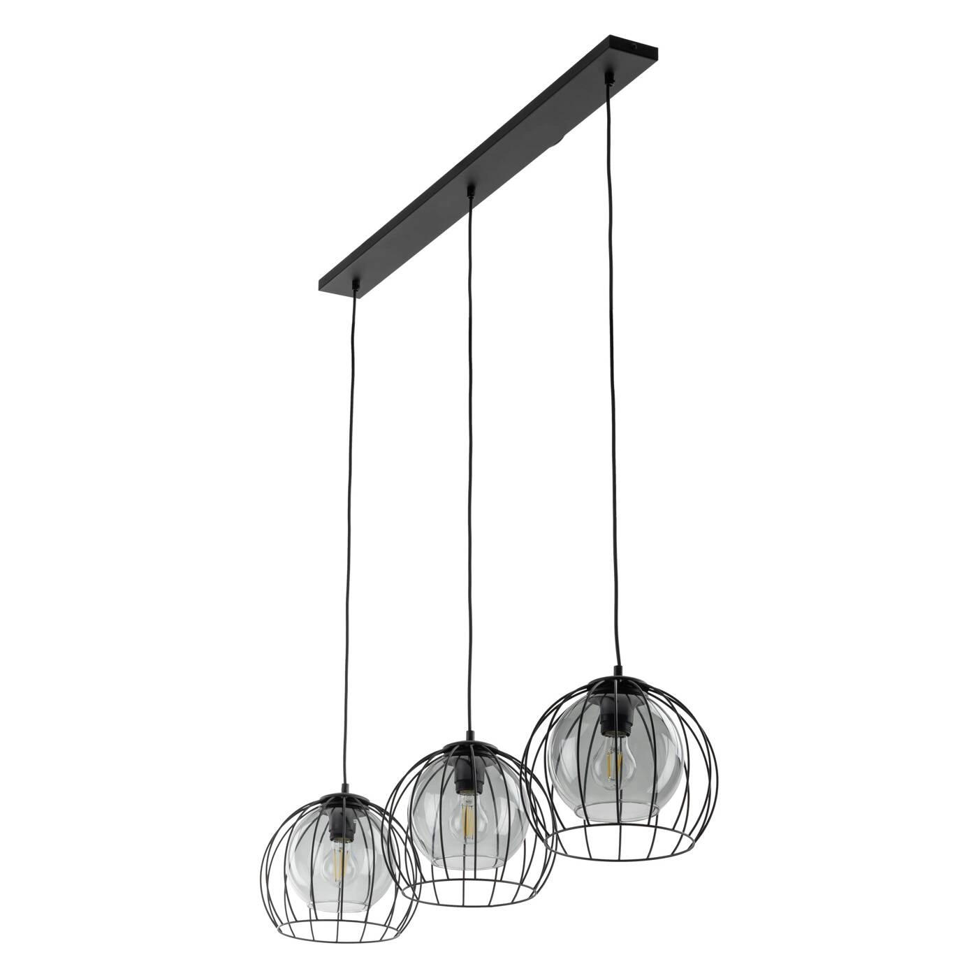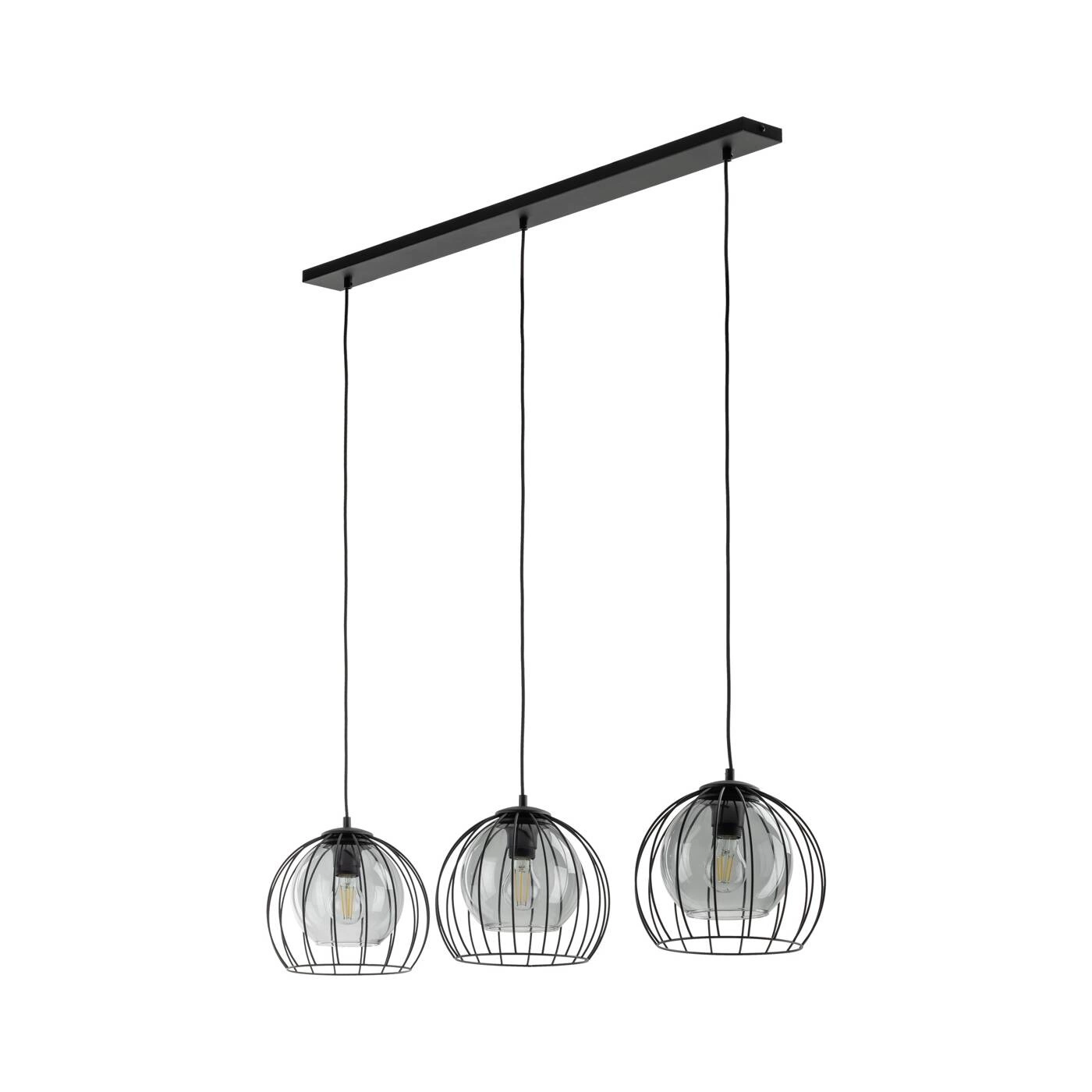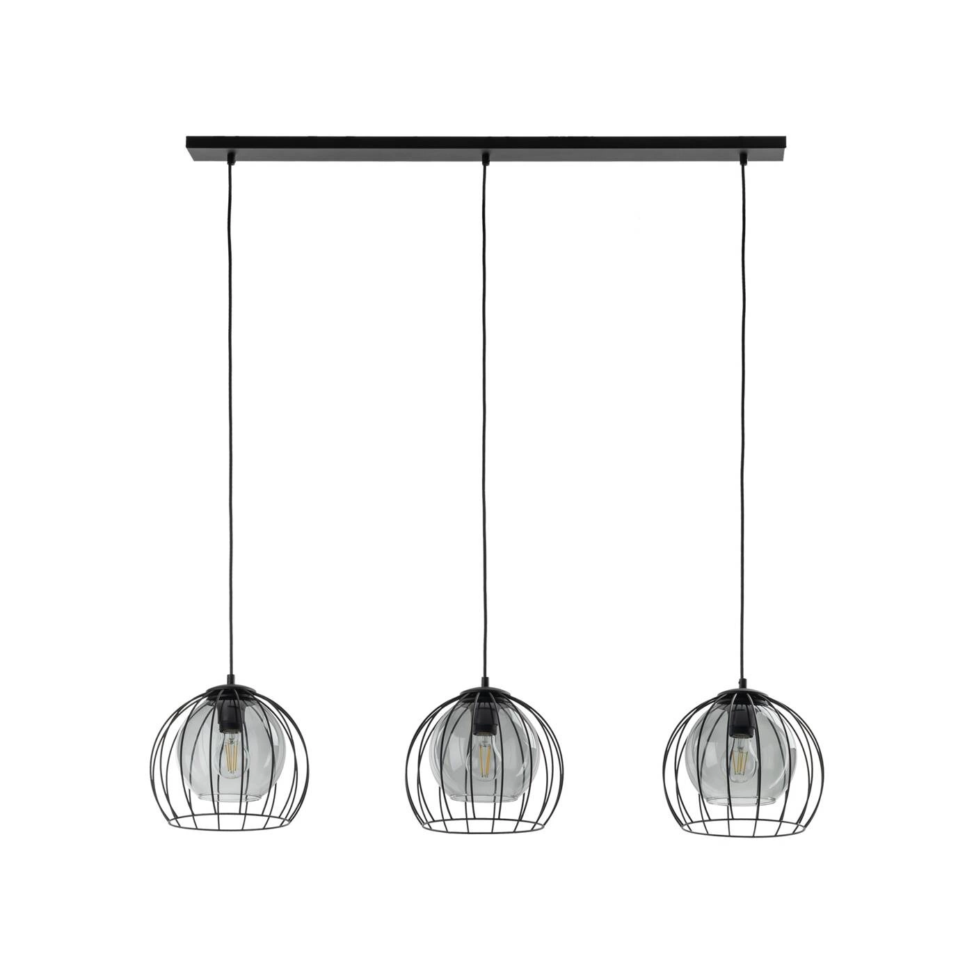 UNIVERSO 4483 to nowoczesna lampa wisząca z trzema źródłami światła. Stelaż lampy wykonano z metalu w kolorze czarnym. Lampa posiada trzy szklane transparentne klosze o grafitowym odcieniu zwisające z podłużnej podsufitki. Każdy z kloszy jest dodatkowo osłonięty drucianą czaszą. Lampa będzie idealnym wyborem do wnętrz urządzonych w stylu nowoczesnym oraz loftowym. Doskonale będzie się prezentować w każdym pomieszczeniu. Dużą zaletą lampy jest możliwość regulacji wysokości. Wysokość maksymalna lampy to: 120 cm, szerokość 111 cm, głębokość 26 cm. Źródłem światła jest żarówka typu E27 o mocy max 60W w ilości 3 szt.