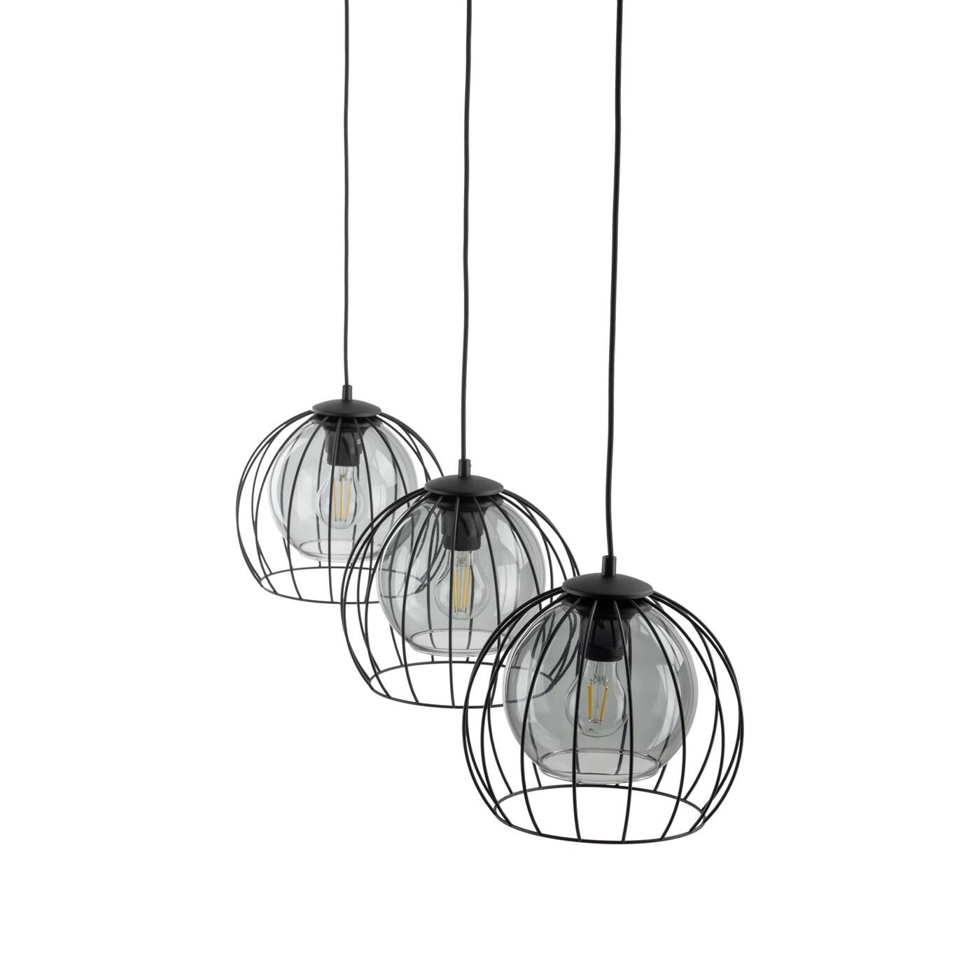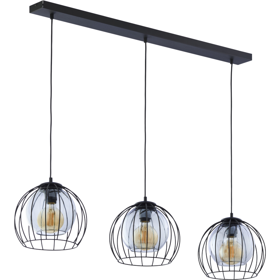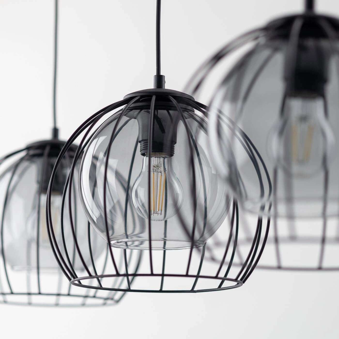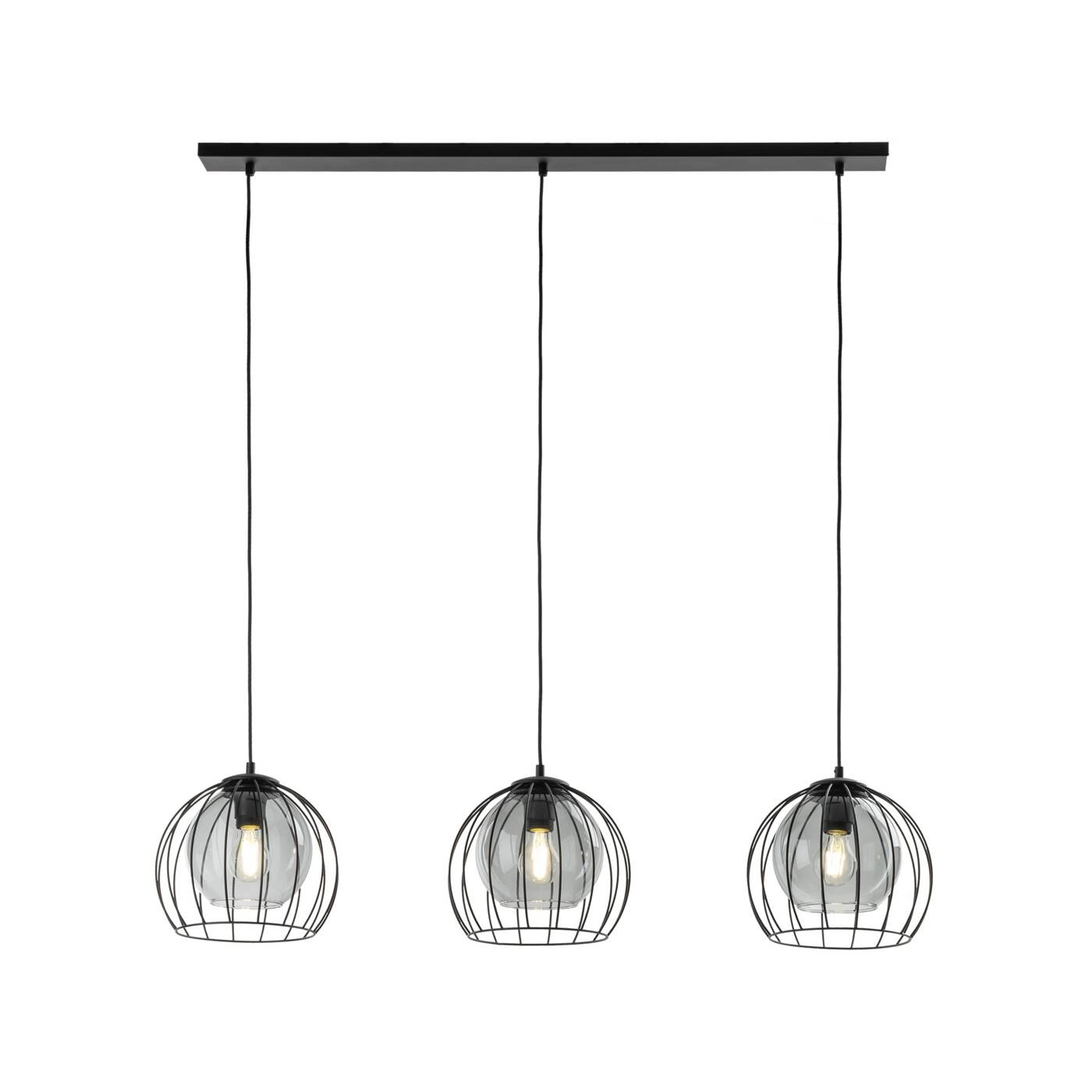 UNIVERSO 4483 to nowoczesna lampa wisząca z trzema źródłami światła. Stelaż lampy wykonano z metalu w kolorze czarnym. Lampa posiada trzy szklane transparentne klosze o grafitowym odcieniu zwisające z podłużnej podsufitki. Każdy z kloszy jest dodatkowo osłonięty drucianą czaszą. Lampa będzie idealnym wyborem do wnętrz urządzonych w stylu nowoczesnym oraz loftowym. Doskonale będzie się prezentować w każdym pomieszczeniu. Dużą zaletą lampy jest możliwość regulacji wysokości. Wysokość maksymalna lampy to: 120 cm, szerokość 111 cm, głębokość 26 cm. Źródłem światła jest żarówka typu E27 o mocy max 60W w ilości 3 szt.