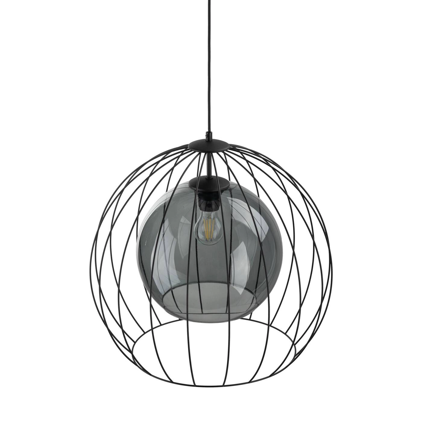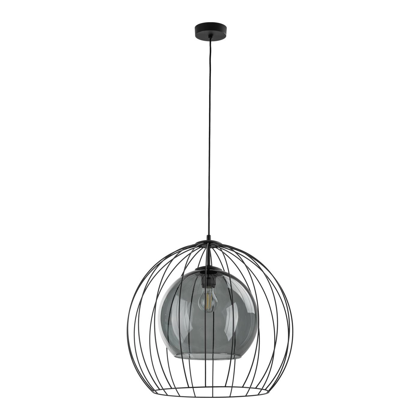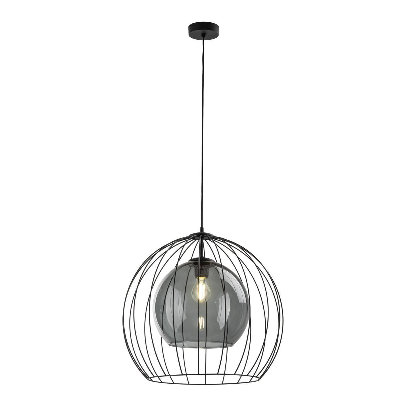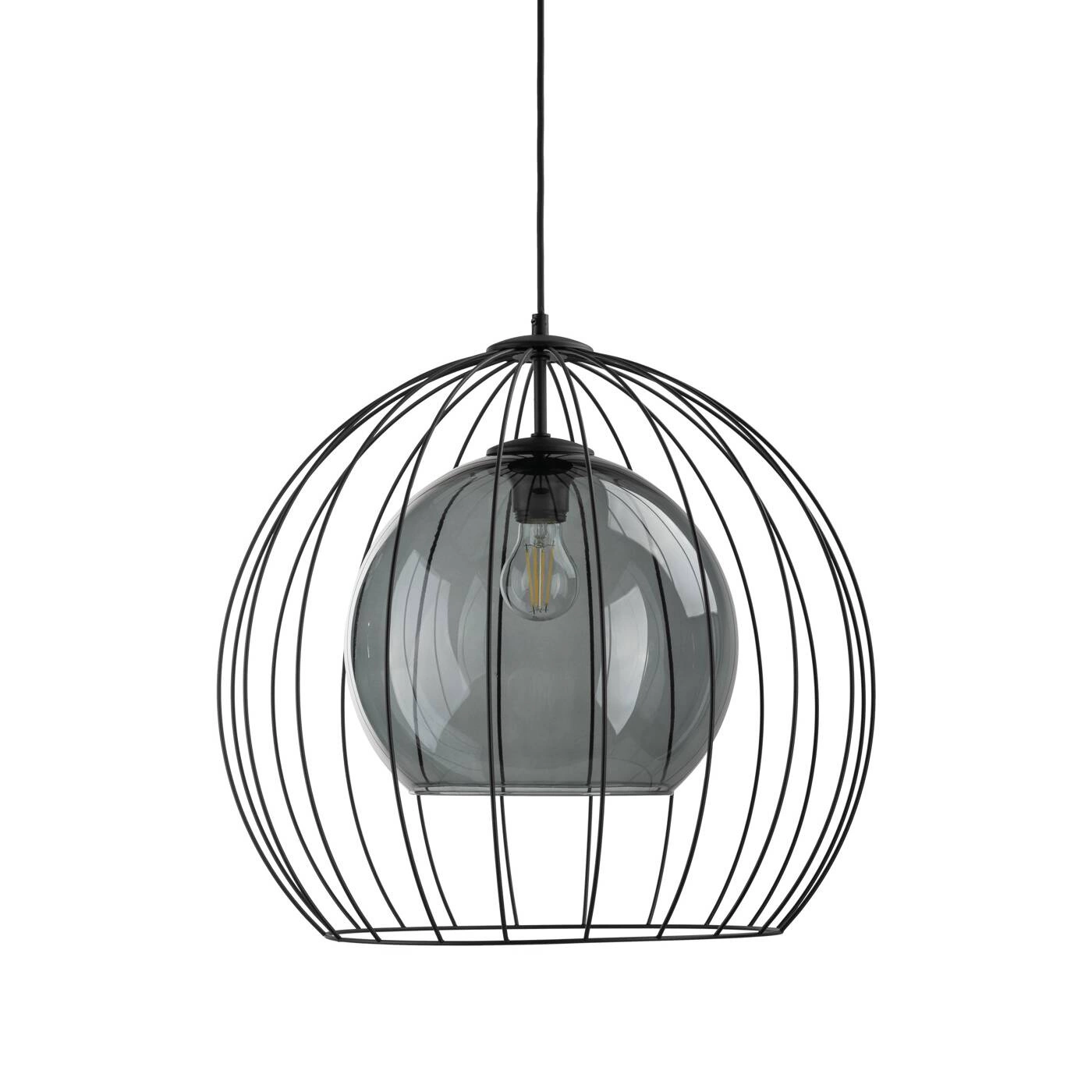 UNIVERSO 2552 to nowoczesna lampa wisząca z jednym źródłem światła. Stelaż lampy wykonano z metalu w kolorze czarnym. Oprawa posiada szklany transparentny klosz o grafitowym odcieniu dodatkowo osłonięty drucianą czaszą. Lampa będzie idealnym wyborem do wnętrz urządzonych w stylu nowoczesnym oraz loftowym. Doskonale będzie się prezentować w każdym pomieszczeniu. Dużą zaletą lampy jest możliwość regulacji wysokości. Wysokość maksymalna lampy to: 140 cm, szerokość 50 cm, głębokość 50 cm. Źródłem światła jest żarówka typu E27 o mocy max 60W w ilości 1 szt.