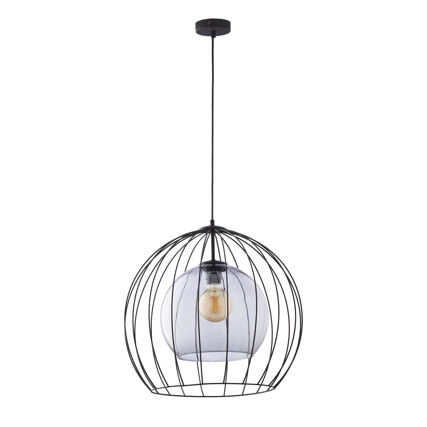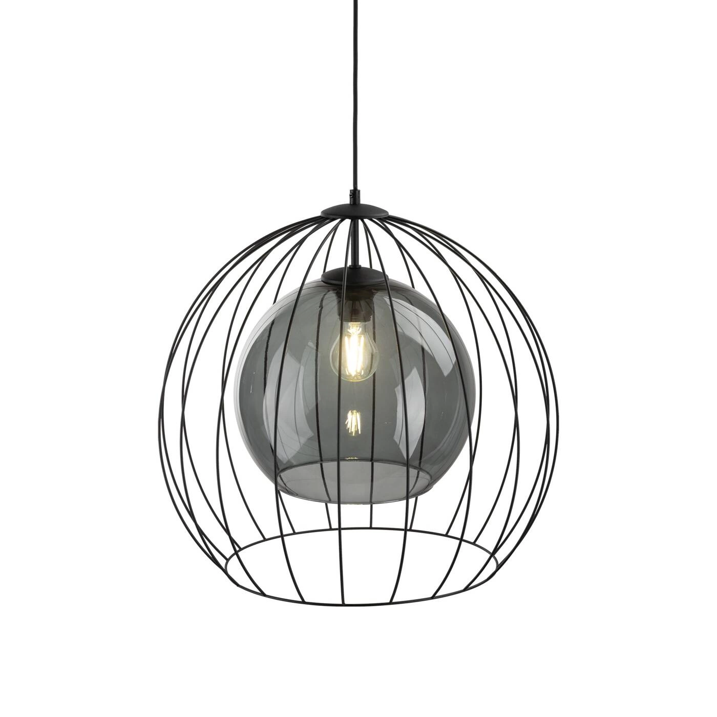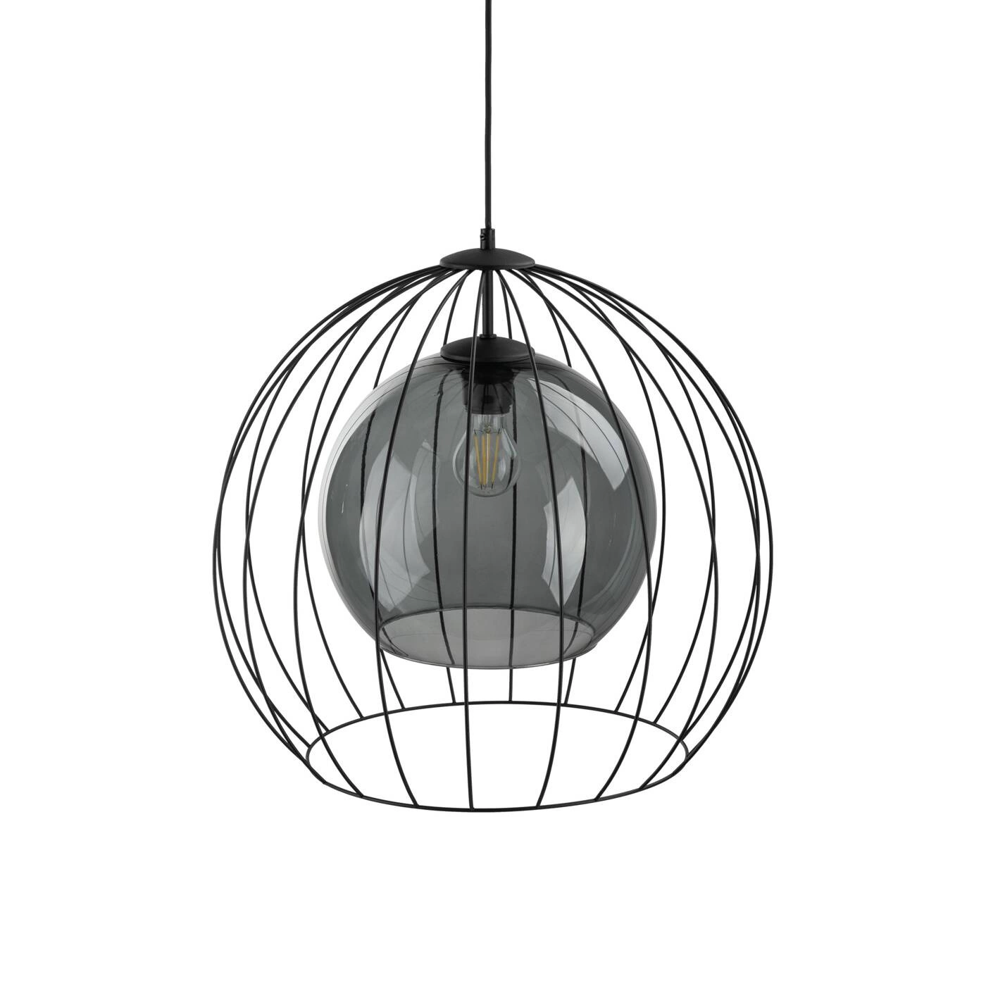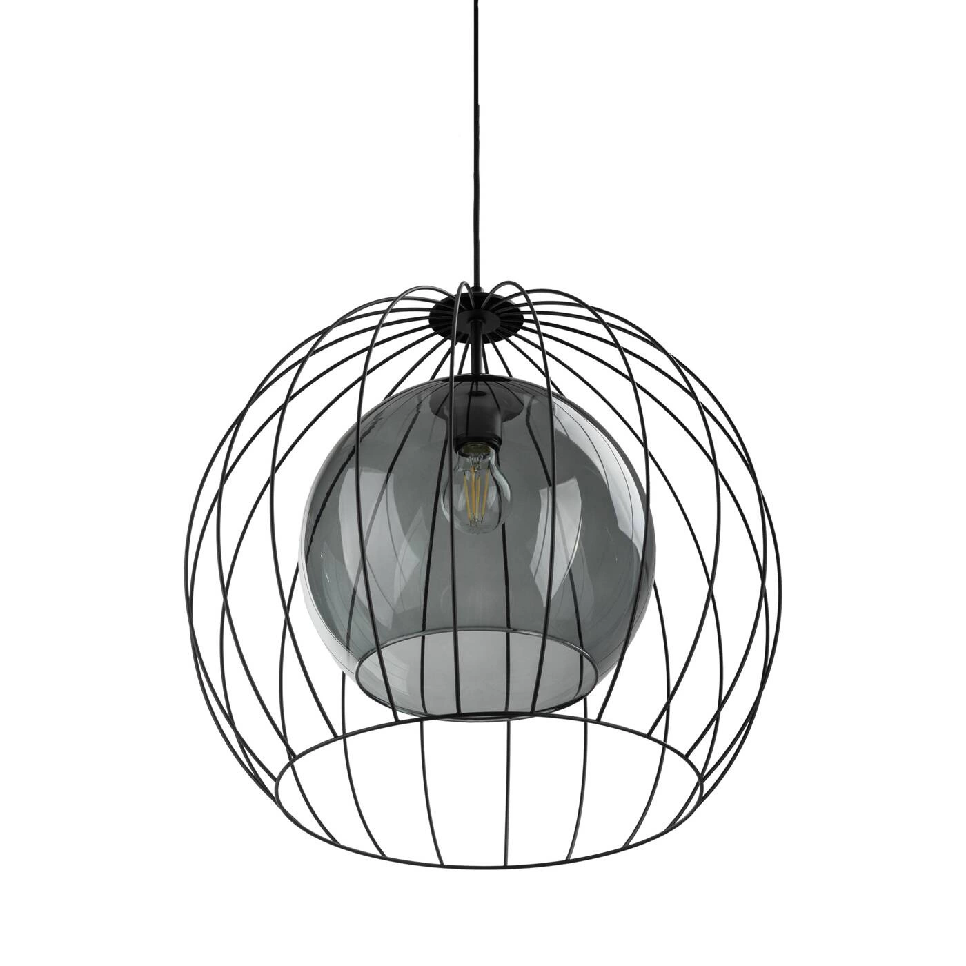 UNIVERSO 2552 to nowoczesna lampa wisząca z jednym źródłem światła. Stelaż lampy wykonano z metalu w kolorze czarnym. Oprawa posiada szklany transparentny klosz o grafitowym odcieniu dodatkowo osłonięty drucianą czaszą. Lampa będzie idealnym wyborem do wnętrz urządzonych w stylu nowoczesnym oraz loftowym. Doskonale będzie się prezentować w każdym pomieszczeniu. Dużą zaletą lampy jest możliwość regulacji wysokości. Wysokość maksymalna lampy to: 140 cm, szerokość 50 cm, głębokość 50 cm. Źródłem światła jest żarówka typu E27 o mocy max 60W w ilości 1 szt.