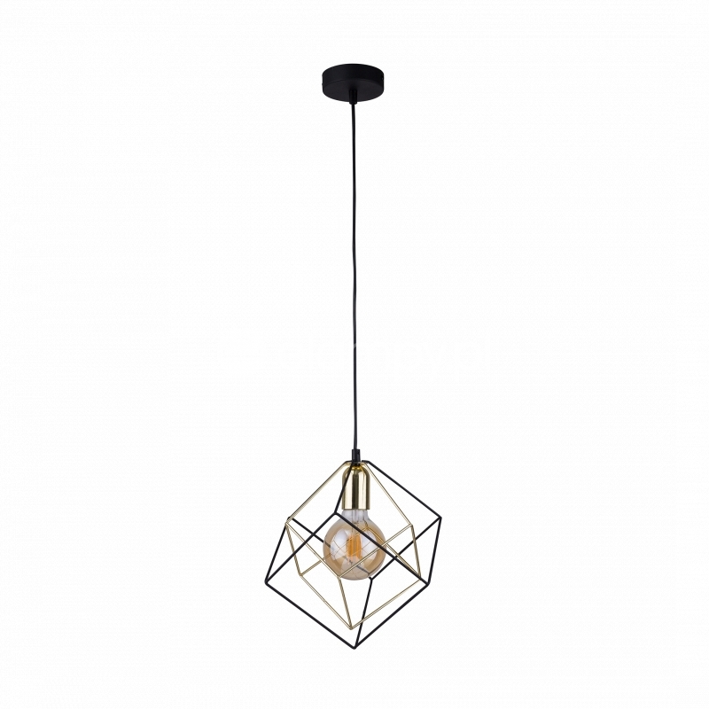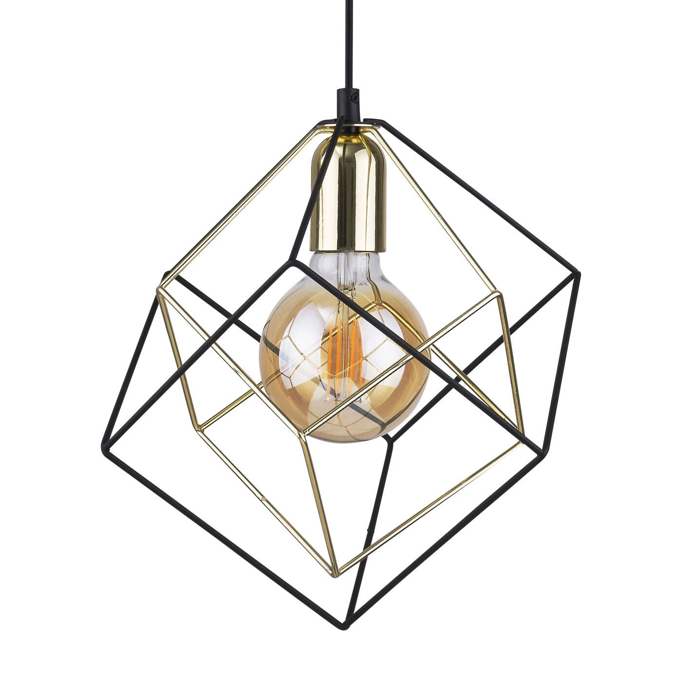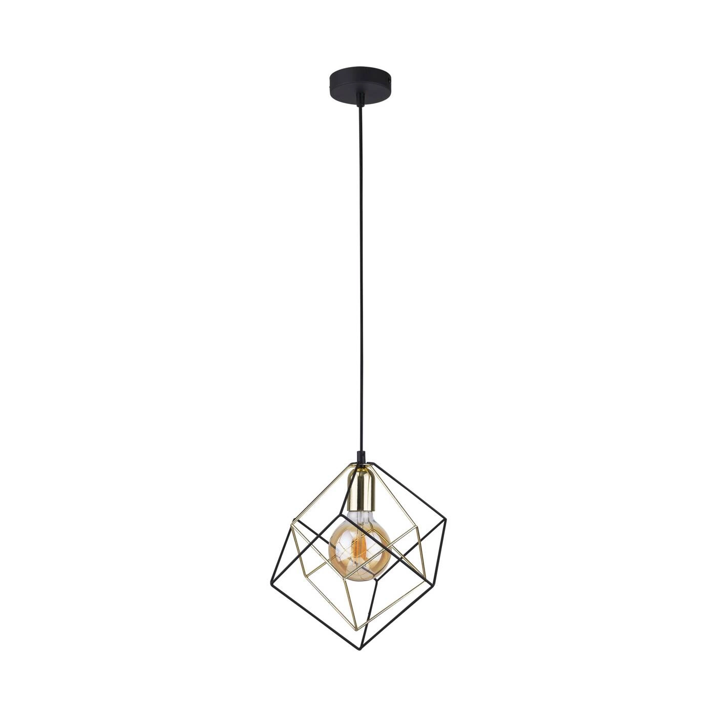 ALAMBRE 2777 to nowoczesna lampa wisząca z jednym źródłem światła. Stelaż lampy wykonano z metalu w kolorze czarnym. Lampa posiada klosz z drutu o geometrycznych kształtach w kolorze czarno-złotym. Kształt klosza sprawia, że odsłonięta żarówka może być elementem ozdobnym lampy dlatego warto wybrać jej dekoracyjny model. Oprawa będzie idealnym wyborem do wnętrz urządzonych w stylu industrialnym oraz nowoczesnym. Doskonale wkomponuje się do każdego pomieszczenia. Dużą zaletą lampy jest możliwość regulacji wysokości. Wysokość maksymalna lampy to: 130 cm, szerokość 24 cm, głębokość 24 cm. Źródłem światła jest żarówka typu E27 o mocy max 60W w ilości 1 szt.