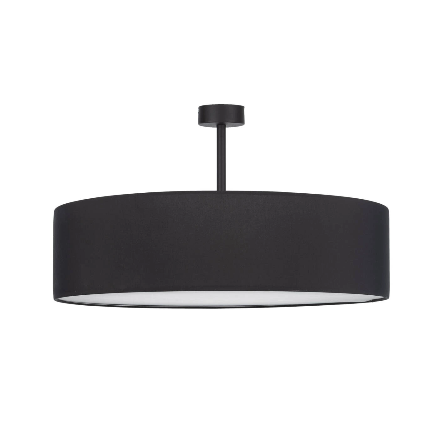 RONDO 4245 to nowoczesna lampa sufitowa z czterema źródłami światła. Lampa posiada cylindryczny abażur z tkaniny w czarnym kolorze od spodu zamknięty mleczną pleksi, która równomiernie rozprasza światło. Widoczna podsufitka jest w kolorze chromu. Oprawa będzie idealnym wyborem do nowoczesnych wnętrz. Doskonale będzie się prezentować w: salonie, jadalni, sypialni, pokoju młodzieżowym, gabinecie, lokalu. Wysokość lampy to: 38 cm, szerokość 60 cm, głębokość 60 cm. Klosz ma wysokość 17 cm i średnicę 60 cm. Źródłem światła jest żarówka E27 typu LED o mocy max 15W w ilości 4 szt.
