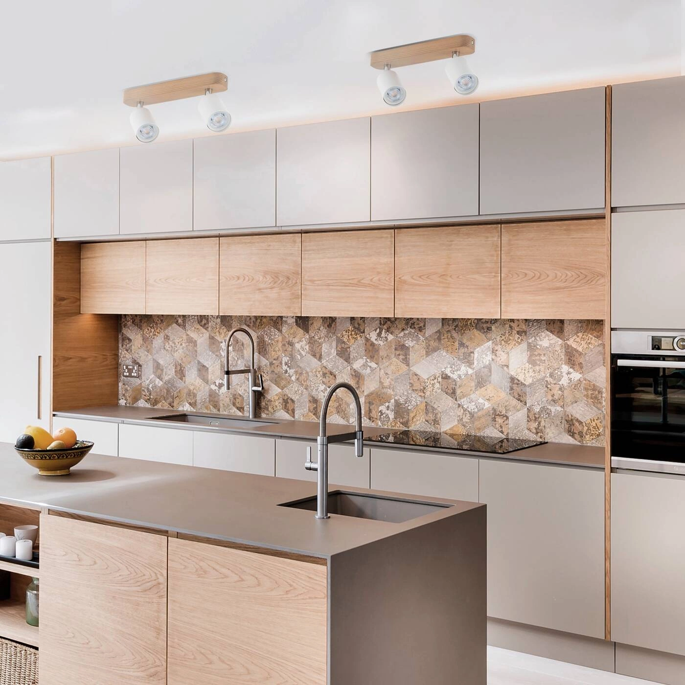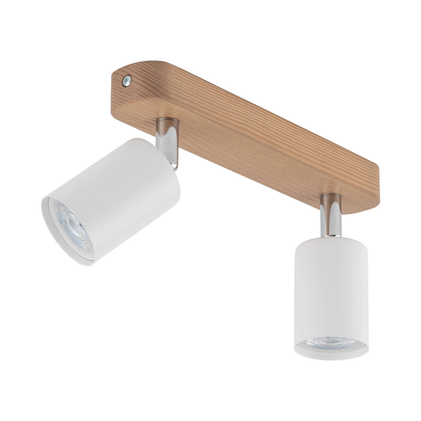 TOP WOOD 3295 to nowoczesna lampa sufitowa z dwoma źródłami światła. Wykonana została z metalu w kolorze białym i drewna. Lampa składa się z podłużnej podsufitki z krótkimi ramionami, na których osadzono dwa reflektorki. Reflektorki mają możliwość regulacji punktu padania światła. Lampa będzie idealnym wyborem do nowoczesnych oraz industrialnych wnętrz. Doskonale będzie się prezentować w: salonie, jadalni, sypialni, pokoju młodzieżowym, gabinecie, biurze, przedpokoju. Wysokość lampy to: 14,5 cm, szerokość 39 cm, głębokość 17 cm. Źródłem światła jest żarówka GU10 typu LED o mocy max 10W w ilości 2 szt.