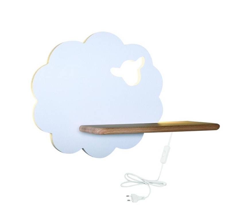 IQ KIDS SHEEP 21-85139 to nowoczesna lampa ścienna w kształcie owieczki ze zintegrowaną półeczką, przeznaczona do dziecięcego pokoju. Wykonana została z drewna w kolorze białym. Lampa posiada przewód z wtyczką i wyłącznikiem, dzięki czemu może być zamontowana w miejscach gdzie nie ma możliwości podłączenia do stałej instalacji elektrycznej. Wysokość lampki to: 24 cm, szerokość 36 cm, głębokość 12 cm. W lampie zastosowano źródło światła LED o mocy 5W, neutralnej barwie 4000K i jasności 250lm.