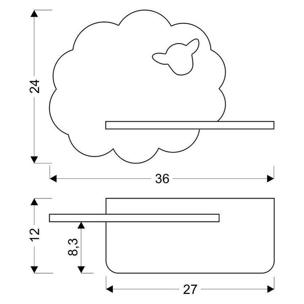 IQ KIDS SHEEP 21-84828 to nowoczesna lampa ścienna w kształcie owieczki ze zintegrowaną półeczką, przeznaczona do dziecięcego pokoju. Wykonana została z drewna w kolorze czarnym. Wysokość lampki to: 24 cm, szerokość 36 cm, głębokość 12 cm. W lampie zastosowano źródło światła LED o mocy 5W, neutralnej barwie 4000K i jasności 250lm.