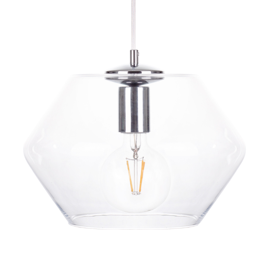 Przezroczysty klosz sprawia że lampa posiada wszechstronne zastosowanie.