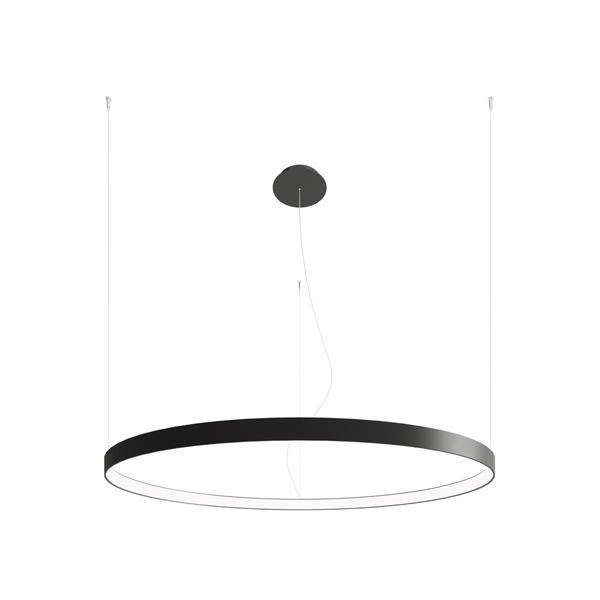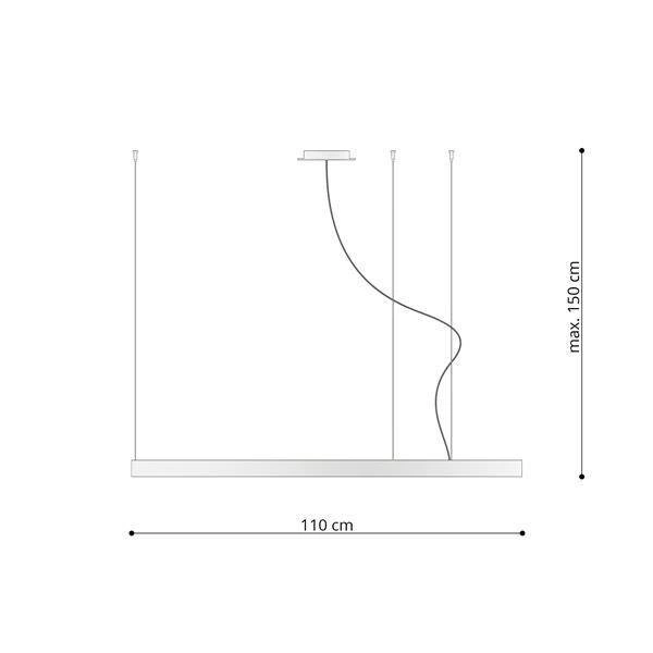 RIO TH.112 to nowoczesna lampa wisząca z jednym źródłem światła. Wykonana została z aluminium i tworzywa PVC. Lampa składa się z czarnego pierścienia zawieszonego na trzech stalowych linkach. Źródło światła znajduje się pod białym matowym dyfuzorem, który doskonale rozprasza światło. Lampa będzie idealnym wyborem do nowoczesnych wnętrz. Świetnie będzie się prezentować w: salonie, jadalni, sypialni, pokoju młodzieżowym, gabinecie, lokalu, korytarzu, przedpokoju, kuchni. Dużą zaletą jest możliwość regulacji wysokości. Wysokość maksymalna lampy to: 150 cm, szerokość 110 cm, głębokość 110 cm. Źródłem światła jest wbudowany moduł LED o mocy 70W, neutralnej barwie światła 4000K i jasności 7820 lm.