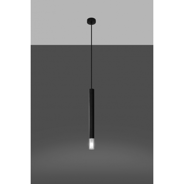 WEZYR SL.0960 to nowoczesna lampa wisząca z jednym źródłem światła. Wykonana została z wysokiej jakości stali w kolorze czarnym. Lampa posiada klosz w kształcie tuby zwisający z okrągłej rozety. Oprawa będzie idealnym wyborem do wnętrz urządzonych w nowoczesnym, industrialnym oraz loftowym stylu. Doskonale będzie się prezentować w: salonie, jadalni, sypialni, pokoju młodzieżowym, gabinecie, biurze, lokalu. Dużą zaletą jest możliwość regulacji wysokości. Wysokość maksymalna lampy to: 120 cm, szerokość 8 cm, głębokość 8 cm. Źródłem światła jest żarówka typu G9 o mocy max 40W w ilości 1 szt.