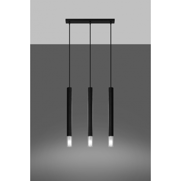 WEZYR SL.0962 to nowoczesna lampa wisząca z trzema źródłami światła. Wykonana została z wysokiej jakości stali w kolorze czarnym. Lampa posiada trzy klosze w kształcie tuby zwisające z podłużnej podsufitki. Oprawa będzie idealnym wyborem do wnętrz urządzonych w nowoczesnym, industrialnym oraz loftowym stylu. Doskonale będzie się prezentować w: salonie, jadalni, sypialni, pokoju młodzieżowym, gabinecie, biurze, lokalu. Dużą zaletą jest możliwość regulacji wysokości. Wysokość maksymalna lampy to: 120 cm, szerokość 45 cm, głębokość 6 cm. Źródłem światła jest żarówka typu G9 o mocy max 40W w ilości 3 szt.