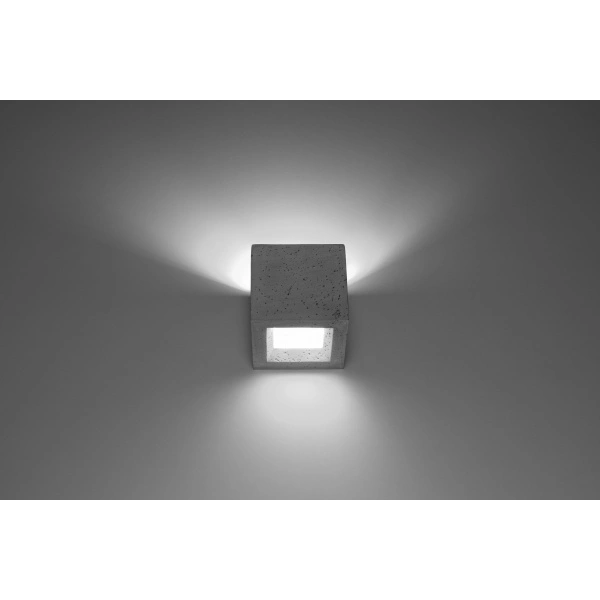 LEO SL.0991 to nowoczesna lampa ścienna z jednym źródłem światła. Lampa ma kształt sześcianu, wykonana jest z betonu w kolorze szarym. Kinkiet od dołu posiada matową szybę a od góry jest otwarty, dzięki czemu światło rozchodzi się zarówno górą jak i dołem. Będzie idealnym wyborem do wnętrz urządzonych w stylu industrialnym oraz loftowym. Doskonale będzie się prezentować w: salonie, jadalni, sypialni, pokoju młodzieżowym, gabinecie, biurze, lokalu, korytarzu, przedpokoju. Wysokość kinkietu to: 12,5 cm, szerokość 12,5 cm, głębokość 12 cm. Źródłem światła jest żarówka typu G9 o mocy max 40W w ilości 1 szt.
