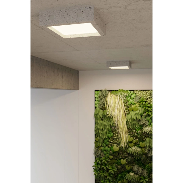 RIZA SL.0995 to nowoczesna lampa sufitowa z jednym źródłem światła. Wykonana została z betonu w kolorze szarym i szkła. Lampa będzie idealnym wyborem do wnętrz urządzonych w stylu: nowoczesnym,  industrialnym oraz loftowym. Doskonale będzie się prezentować w: salonie, jadalni, sypialni, pokoju młodzieżowym, kuchni, gabinecie, lokalu, biurze, przedpokoju, korytarzu. Wysokość plafonu to: 8 cm, szerokość 33 cm, głębokość 33 cm. Źródłem światła jest wbudowany moduł LED o mocy 18W, ciepłej barwie światła 3000K i jasności 1600 lm.