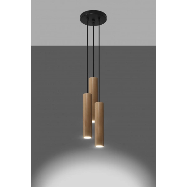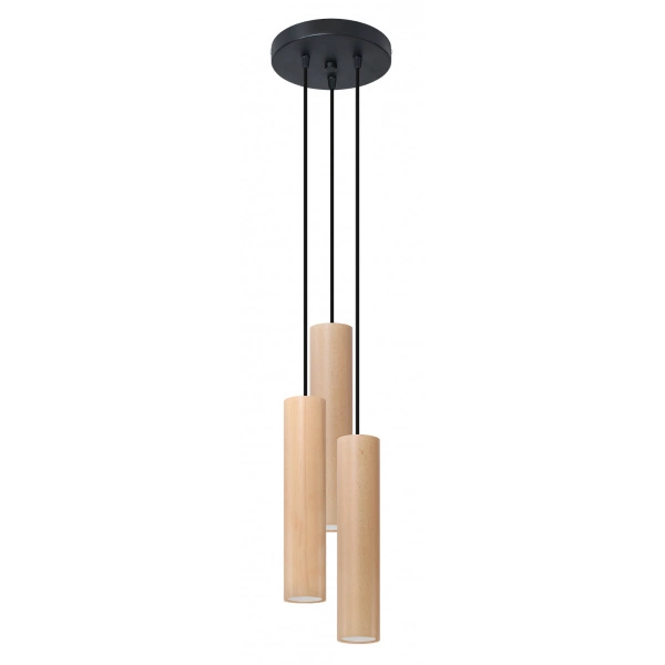 LINO 3P SL.1012 to nowoczesna lampa wisząca z trzema źródłami światła. Wykonana została z wysokiej jakości stali w kolorze czarnym i drewna. Lampa posiada trzy drewniane klosze w kształcie tuby zwisające z okrągłej rozety. Oprawa będzie idealnym wyborem do wnętrz urządzonych w nowoczesnym stylu. Doskonale będzie się prezentować w: salonie, jadalni, sypialni, pokoju młodzieżowym, gabinecie, biurze, lokalu, kuchni. Dużą zaletą jest możliwość regulacji wysokości. Wysokość maksymalna lampy to: 100 cm, szerokość 20 cm, głębokość 20 cm. Źródłem światła jest żarówka typu G10 o mocy max 40W w ilości 3 szt.