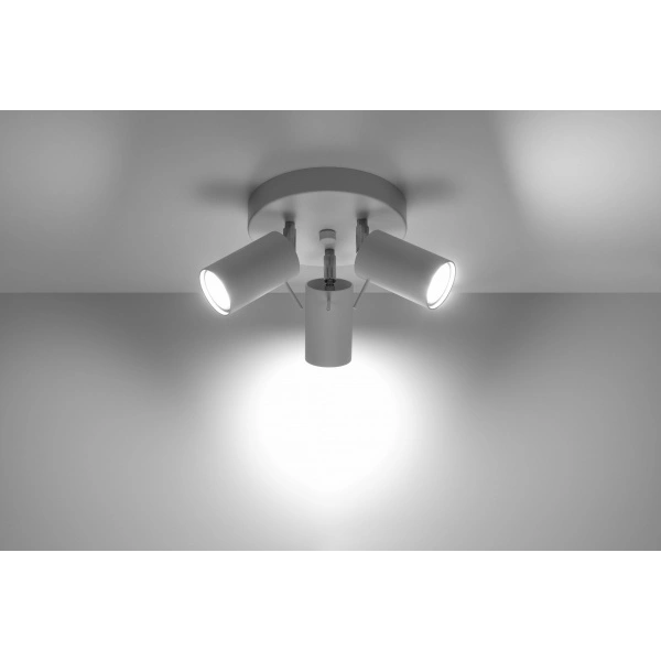 RING 3P SL.1015 to nowoczesna lampa sufitowa z trzema źródłami światła. Wykonana została z wysokiej jakości metalu w kolorze białym. Lampa składa się z okrągłej rozety z krótkimi ramionami, na których osadzono trzy reflektorki. Reflektorki mają możliwość regulacji punktu padania światła. Lampa będzie idealnym wyborem do nowoczesnych wnętrz. Doskonale będzie się prezentować w: salonie, jadalni, sypialni, pokoju młodzieżowym, gabinecie, biurze, przedpokoju, korytarzu. Wysokość lampy to: 18 cm, szerokość 20 cm, głębokość 20 cm. Źródłem światła jest żarówka typu GU10 o mocy max 40W w ilości 3 szt.