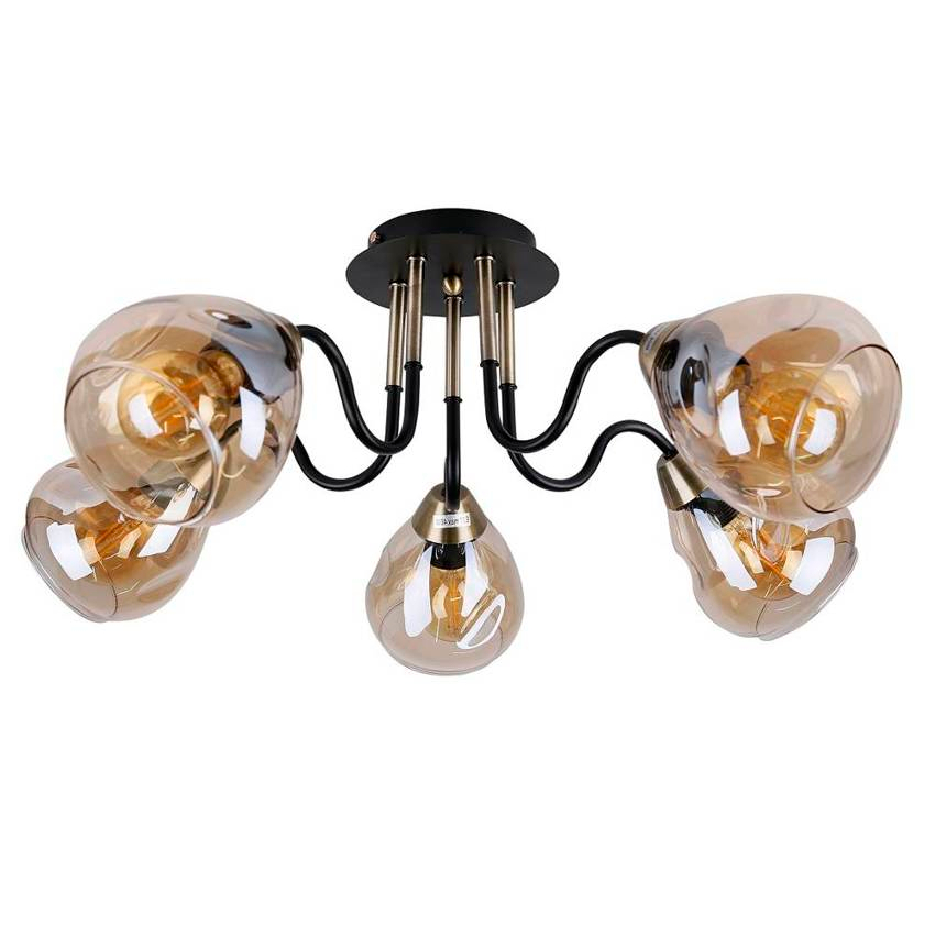 Lampa sufitowa UNICA, 35-00897, czarno-złota z dymionymi kloszami, 5x40W E27