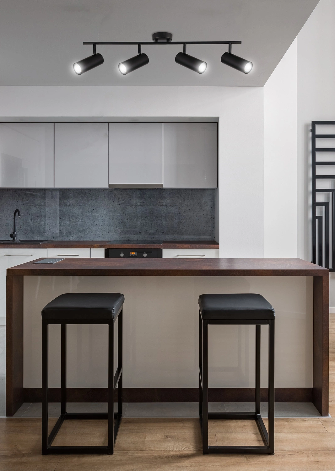 COLLY 94-01641 to stylowa lampa z czterema źródłami światła, która może być zamontowana zarówno na ścianie jak i na suficie. Wykonana została z wysokiej jakości metalu w kolorze czarnym. Klosze lampy osadzone są na ruchomych przegubach dzięki czemu można regulować kierunek padania światła. Oprawa będzie idealnym wyborem do wnętrz urządzonych w stylu klasycznym oraz nowoczesnym. Doskonale będzie się prezentować w: salonie, jadalni, sypialni, pokoju młodzieżowym, gabinecie, lokalu, kuchni, przedpokoju. Wysokość lampy to: 18 cm, szerokość 74 cm, głębokość 9 cm. Źródłem światła jest żarówka typu GU10 o mocy max 15W w ilości 4 szt.