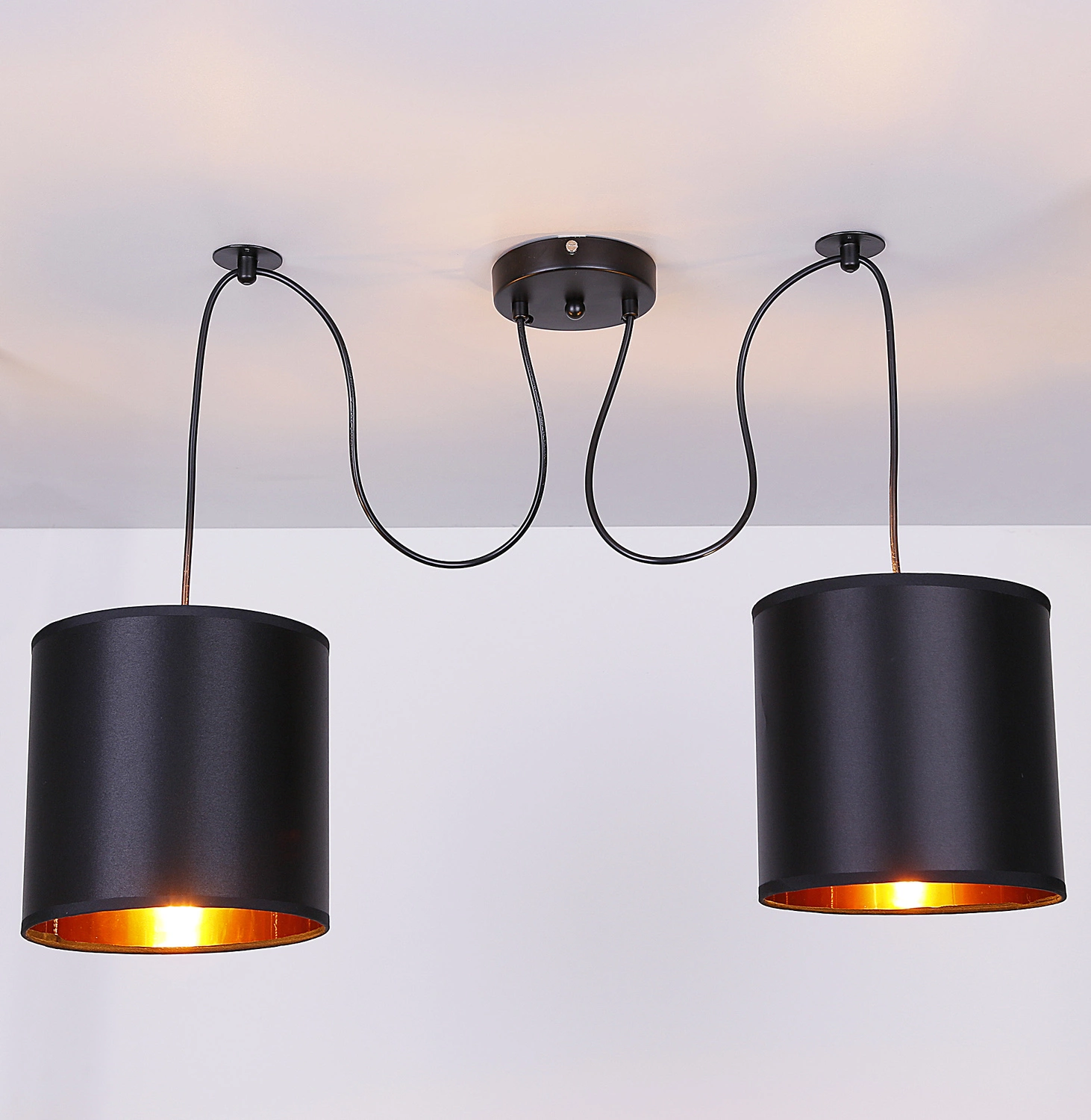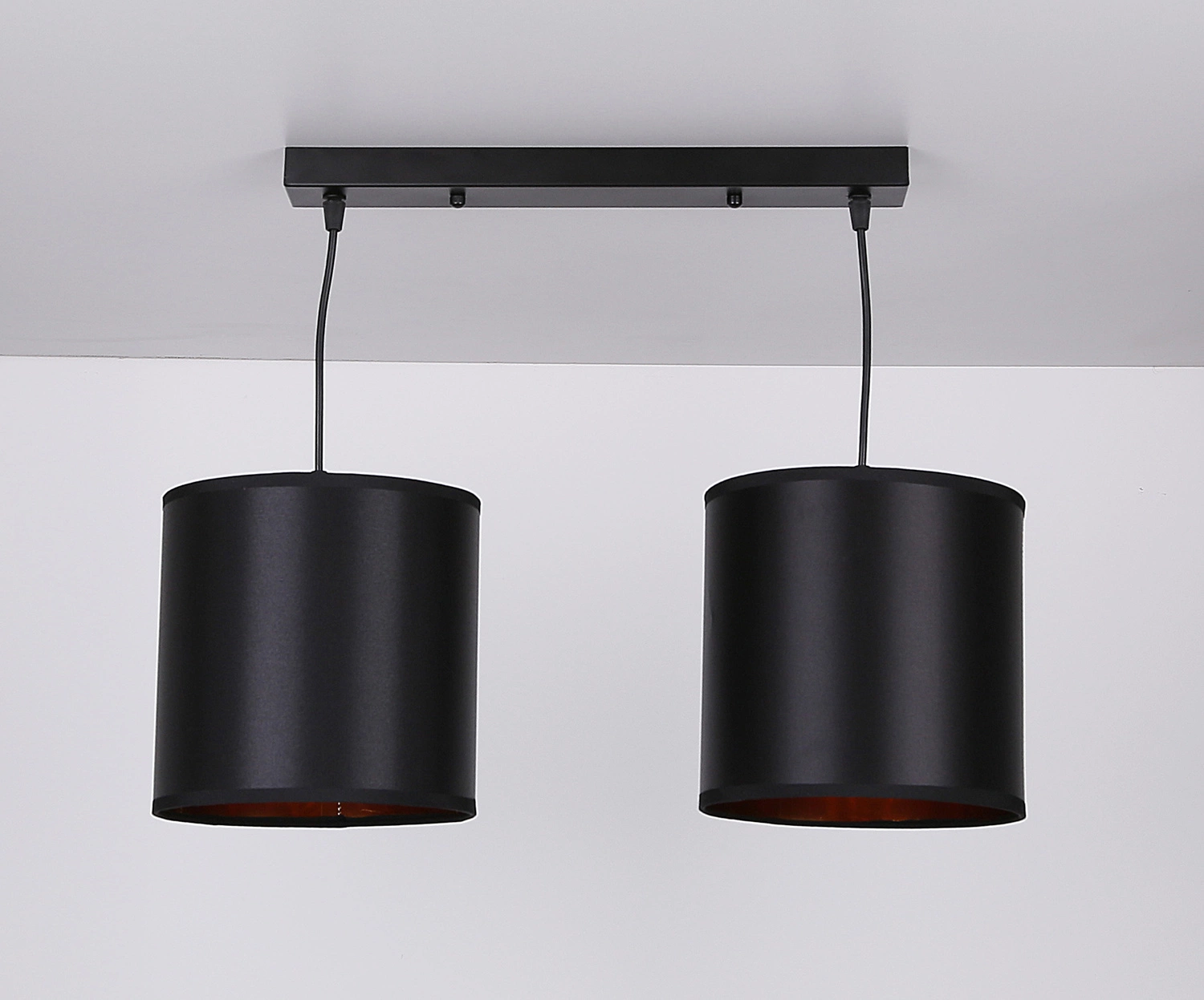 CANDIDA 32-00842 to stylowa lampa wisząca z dwoma źródłami światła. Zawiesie lampy wykonano z wysokiej jakości stali w kolorze czarnym. Abażury z zewnątrz są z czarnej tkaniny a w środku mają złotą folię która efektownie odbija światło. Oprawa będzie idealnym wyborem do wnętrz urządzonych w stylu nowoczesnym oraz industrialnym. Doskonale będzie się prezentować w: salonie, jadalni, sypialni, pokoju młodzieżowym, gabinecie, lokalu, kuchni. Dużym atutem jest możliwość regulacji wysokości. Wysokość maksymalna lampy to: 130 cm, szerokość 100 cm, głębokość 20 cm. Źródłem światła jest żarówka typu E27 o mocy max 40W w ilości 2 szt.