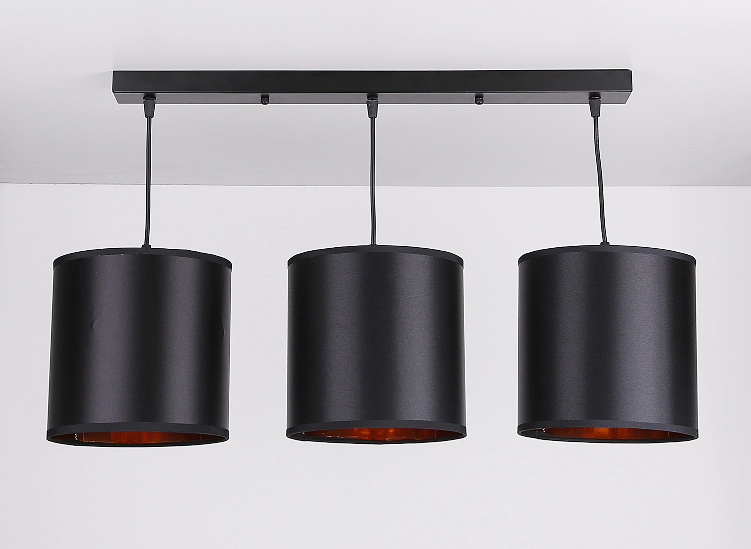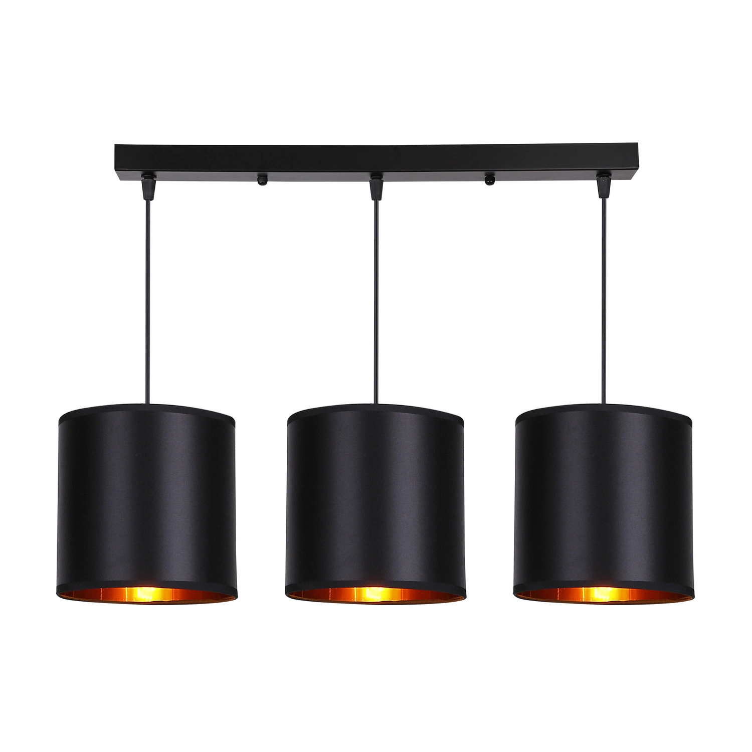 CANDIDA 33-00736 to stylowa lampa wisząca z trzema źródłami światła. Zawiesie lampy wykonano z wysokiej jakości stali w kolorze czarnym. Abażury z zewnątrz są z czarnej tkaniny a w środku mają złotą folię która efektownie odbija światło. Oprawa będzie idealnym wyborem do wnętrz urządzonych w stylu nowoczesnym oraz industrialnym. Doskonale będzie się prezentować w: salonie, jadalni, sypialni, pokoju młodzieżowym, gabinecie, lokalu, kuchni. Dużym atutem jest możliwość regulacji wysokości. Wysokość maksymalna lampy to: 100 cm, szerokość 72 cm, głębokość 20 cm. Źródłem światła jest żarówka typu E27 o mocy max 40W w ilości 3 szt.