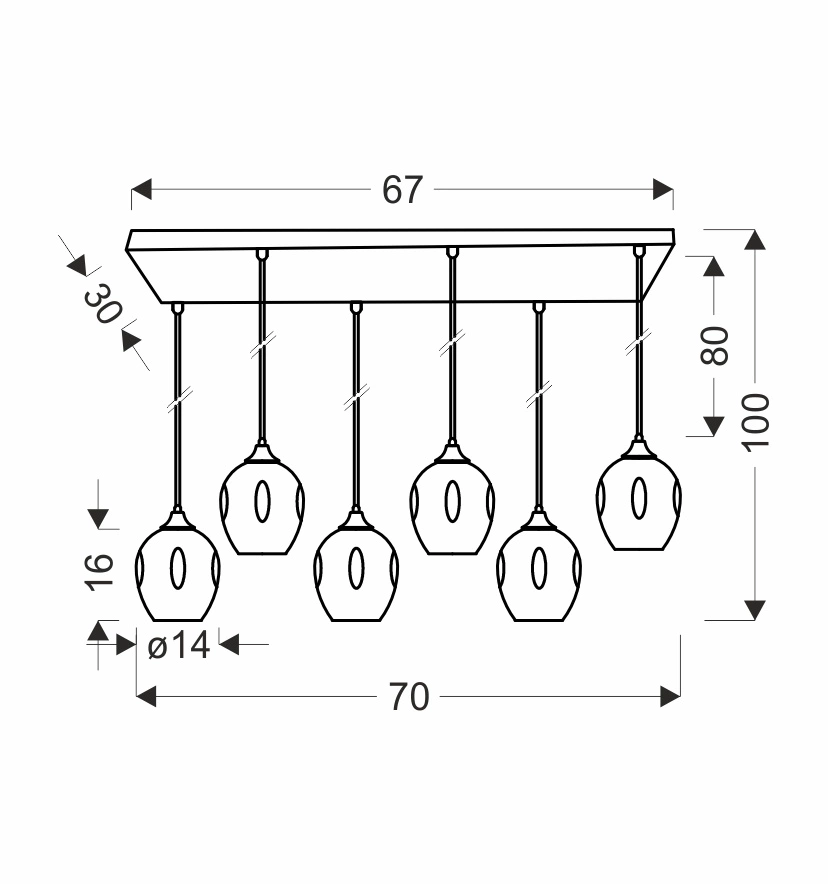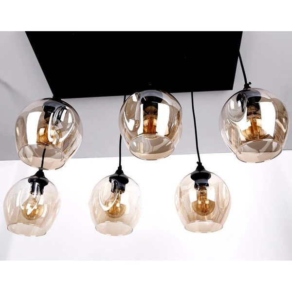 ASPA 36-00620 to stylowa lampa wisząca z sześcioma źródłami światła. Zawiesie lampy wykonano z wysokiej jakości stali w kolorze czarnym, klosze są z brązowego szkła. Oprawa będzie idealnym wyborem do wnętrz urządzonych w stylu klasycznym oraz nowoczesnym. Doskonale będzie się prezentować w: salonie, jadalni, sypialni, pokoju młodzieżowym, gabinecie, lokalu, kuchni. Dużym atutem jest możliwość regulacji wysokości. Wysokość maksymalna lampy to: 100 cm, szerokość 70 cm, głębokość 33 cm. Źródłem światła jest żarówka typu E27 o mocy max 40W w ilości 6 szt.