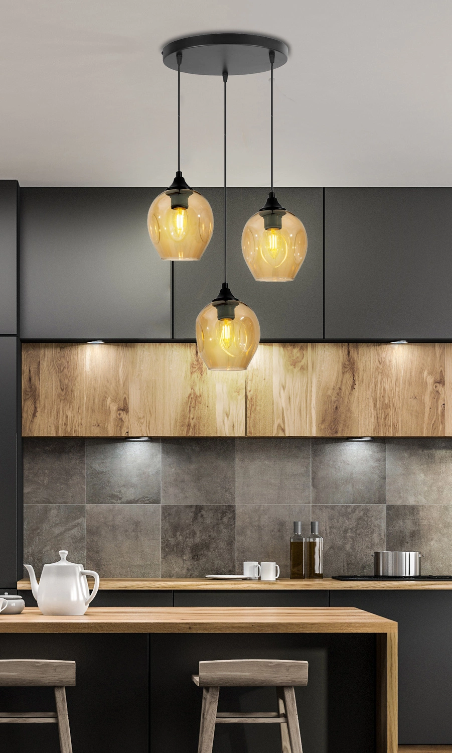 Lampa wisząca ASPA, czarna z brązowymi kloszami, 3x40W E27