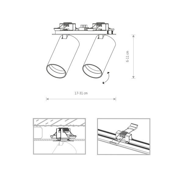 Wysokość: 6-11 cm Szerokość: 5.5-20 cm Długość: 17-31 cm Szerokość podsufitki: 4 cm Długość podsufitki: 17 cm Wysokość abażura/klosza/reflektora 10.5 cm Szerokość abażura/klosza/reflektora 5.5 cm Kształt otworu Prostokątny Wymiary otworu 16x3.1 cm
