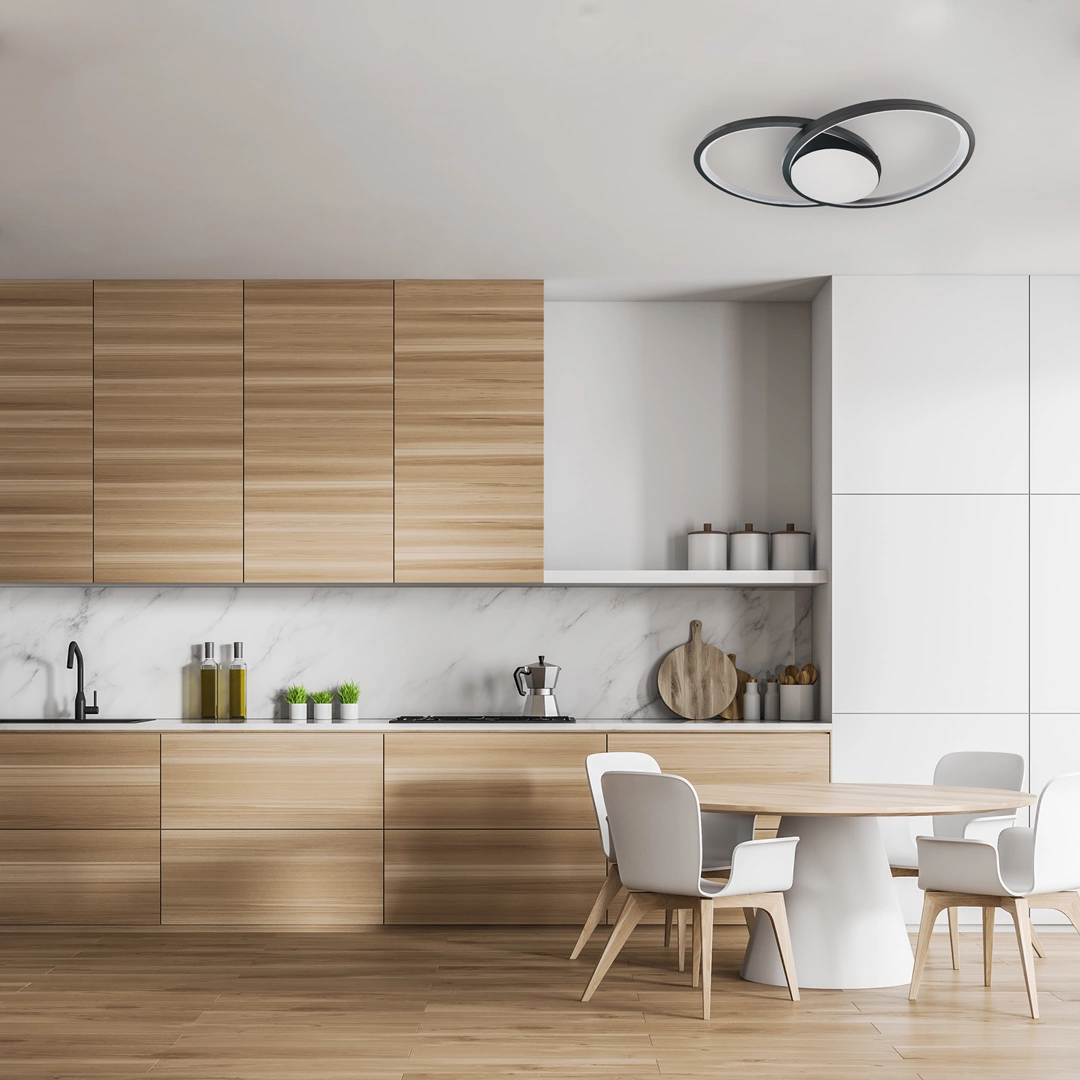 FOCUS ML6413 to designerska lampa sufitowa, która doskonale wkomponuje się do każdego pomieszczenia. Korpus lampy wykonano z wysokiej jakości metalu w kolorze czarnym, źródło światła ukryto pod mleczną osłoną z akrylu. Wysokość lampy to: 6 cm, szerokość 50 cm. W lampie zastosowano wymienne źródło światła LED o mocy 40W, neutralnej barwie 4000K i jasności 2400lm