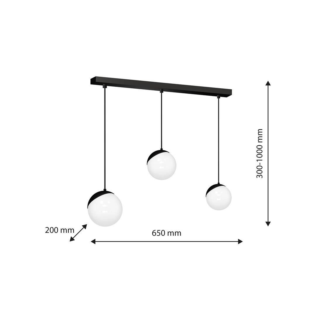 SFERA MLP7237 to stylowa lampa wisząca z trzema źródłami światła. Zawiesie lampy wykonano z wysokiej jakości metalu w kolorze czarnym. Klosze są z białego szkła. Oprawa będzie idealnym wyborem do wnętrz urządzonych w nowoczesnym stylu. Doskonale będzie się prezentować w: salonie, jadalni, sypialni, pokoju młodzieżowym, gabinecie, biurze, lokalu, przedpokoju, kuchni. Dużym atutem jest możliwość regulacji wysokości. Wysokość maksymalna lampy to: 100 cm, szerokość 65 cm, głębokość 20 cm. Źródłem światła jest żarówka typu E14 o mocy max 40W w ilości 3 szt.