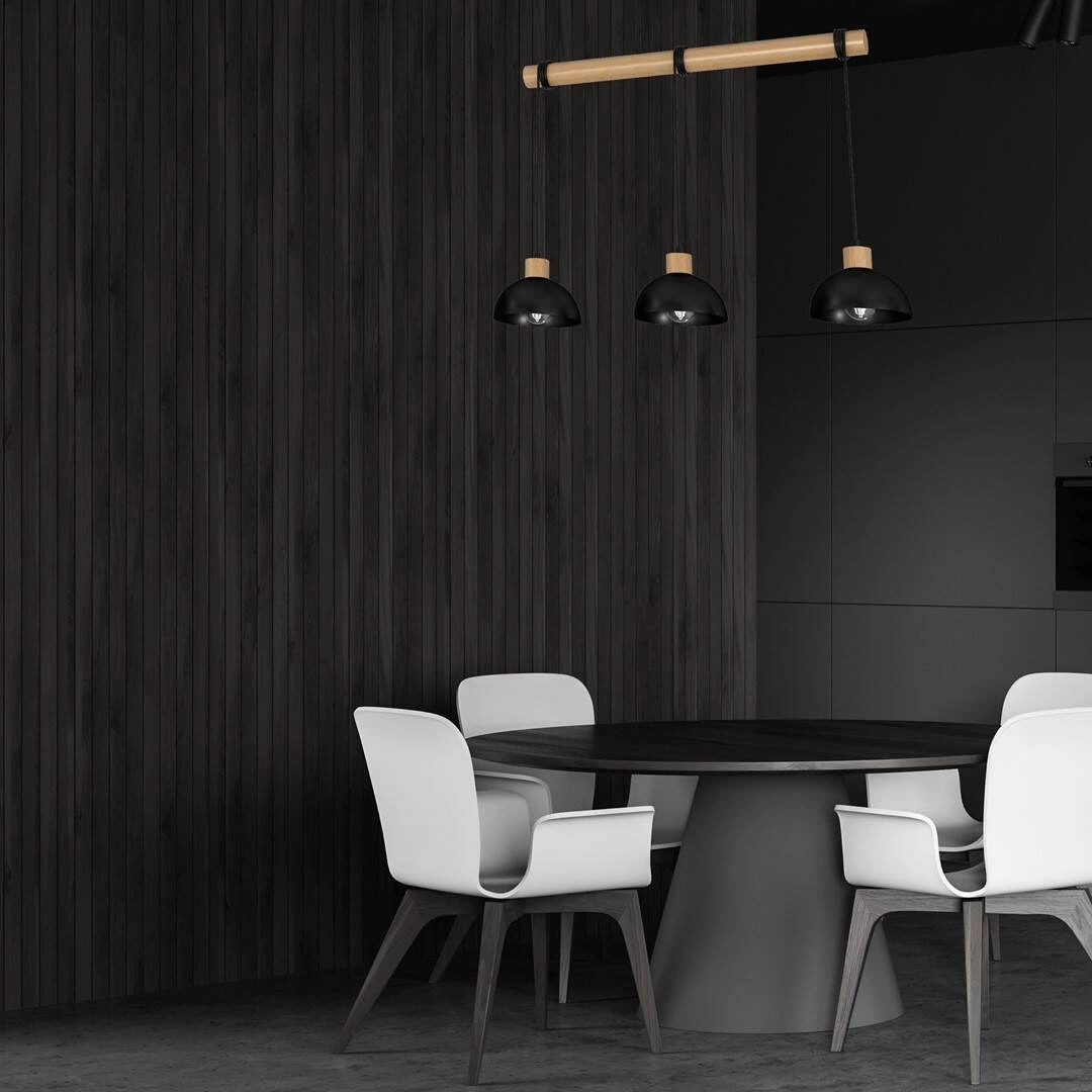 Lampa wisząca ERIK, MLP7226, czarny/drewno, 3x60W E27