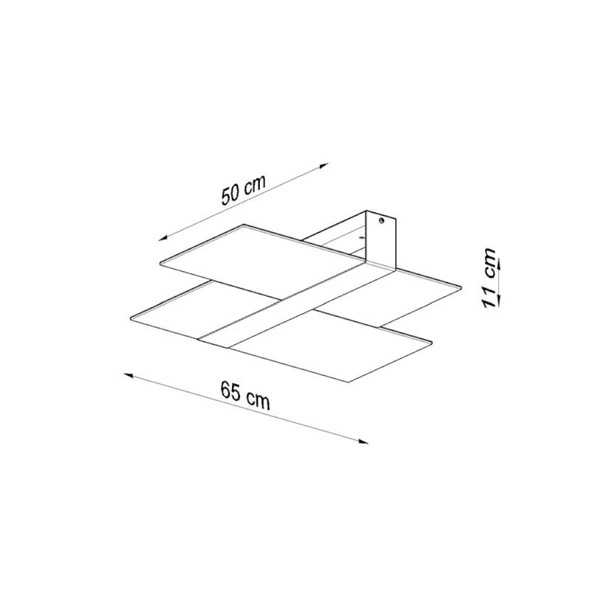 Lampa ma długości 65 cm, szerokości 50 cm, wysokości 11 cm