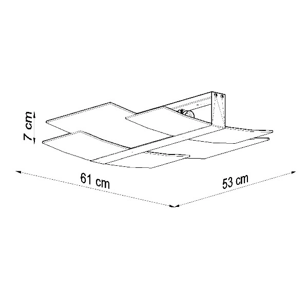 Lampa ma długość 61 cm, szerokość 53 cm, wysokość 7 cm