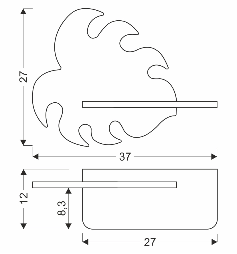 IQ KIDS MONSTERA 21-00941 to nowoczesna lampa ścienna w kształcie liścia ze zintegrowaną półeczką, przeznaczona do dziecięcego pokoju. Wykonana została z drewna, MDF-u i stali w kolorze zielonym. Wysokość lampki to: 27 cm, szerokość 37 cm, głębokość 12 cm. W lampie zastosowano źródło światła LED o mocy 5W, neutralnej barwie 4000K i jasności 250lm.