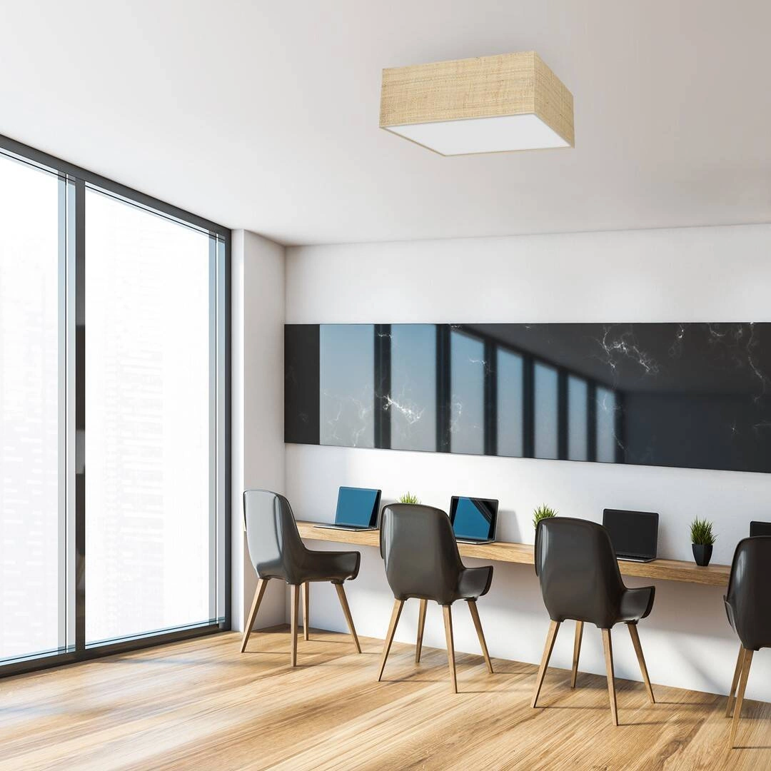 MARSHALL MLP7484 to stylowa lampa sufitowa z dwoma źródłami światła. Lampa składa się z białej metalowej podstawy i kwadratowego rattanowego klosza zamkniętego od spodu białym dyfuzorem. Oprawa będzie idealnym wyborem do wnętrz urządzonych w stylu klasycznym, skandynawskim oraz rustykalnym. Doskonale będzie się prezentować w: salonie, jadalni, sypialni, pokoju młodzieżowym, gabinecie, lokalu, przedpokoju, kuchni. Wysokość lampy to: 13 cm, szerokość 40 cm, głębokość 40 cm. Źródłem światła jest żarówka typu E27 o mocy max 60W w ilości 2 szt.