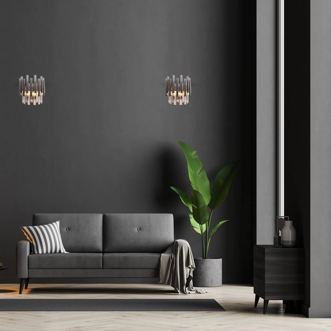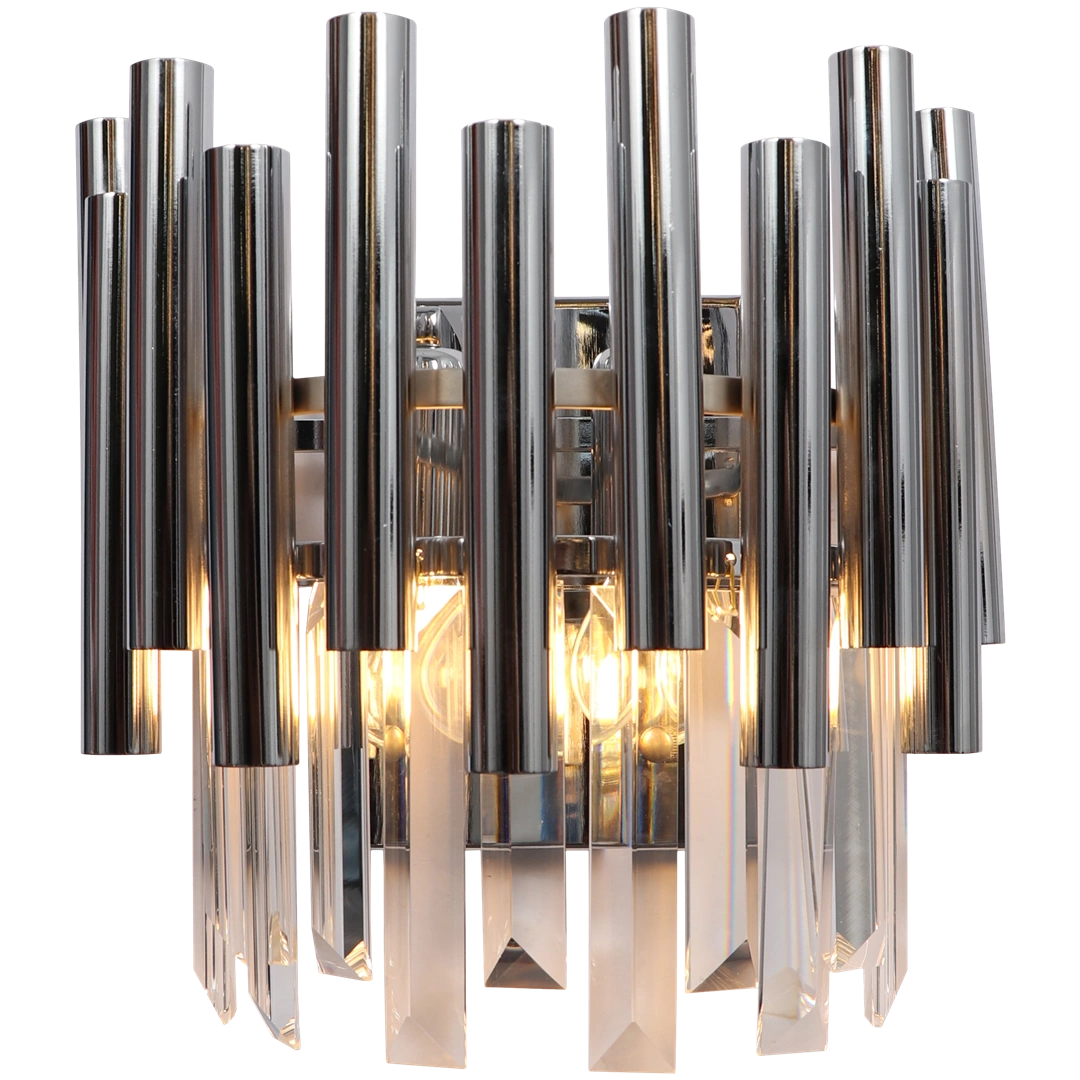 MADISON ML6936 to bardzo elegancka lampa ścienna z dwoma źródłami światła. Wykonana została z wysokiej jakości metalu w kolorze chromowym i transparentnych kryształów, które efektownie rozpraszają światło. Bardzo elegancki wygląd sprawia, że lampa będzie idealnym wyborem do wnętrz nowoczesnych, klasycznych oraz glamour. Doskonale wkomponuje się do: salonu, sypialni, jadalni, lokalu, przedpokoju, korytarza. Wysokość lampy to: 25 cm, szerokość 26 cm, głębokość 19 cm. Źródłem światła jest żarówka typu E14 o mocy max 40W w ilości 2 szt.